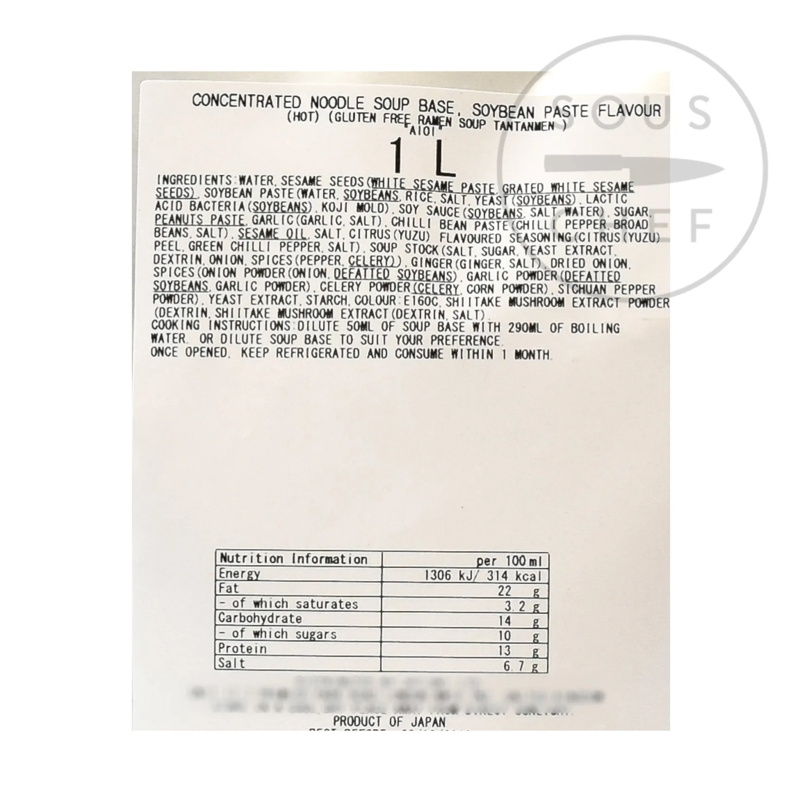 Product formulations and details may change. For the latest ingredients and allergen information always check product packaging prior to consumption. Ingredients: water sesame seeds (white sesame paste, grated white sesame seeds), soybean paste (water, soybeans, rice, salt, yeast (soybeans), lactic acid bacteria, koji), soy sauce (soybeans, salt, water), sugar, peanut paste, garlic (garlic, salt), chilli bean paste (chilli pepper, broad beans, salt), sesame oil, salt, citrus (yuzu) flavoured seasoning (yuzu) (citrus peel [yuzu], green chilli pepper, salt), soup stock (salt, sugar, yeast extract, dextrin, onion, spices [pepper, celery]), ginger (ginger, salt), dried onion, spices (onion powder [onion, deatted soybeans], garlic powder [defatted soybeans, garlic powder], celery powder [celery, corn powder], Sichuan pepper powder), yeast extract, starch, colour: E160C, shiitake mushroom extract powder (dextrin, shiitake mushroom extract [dextrin, salt]). Contains allergens: soya, sesame, peanuts, celery.