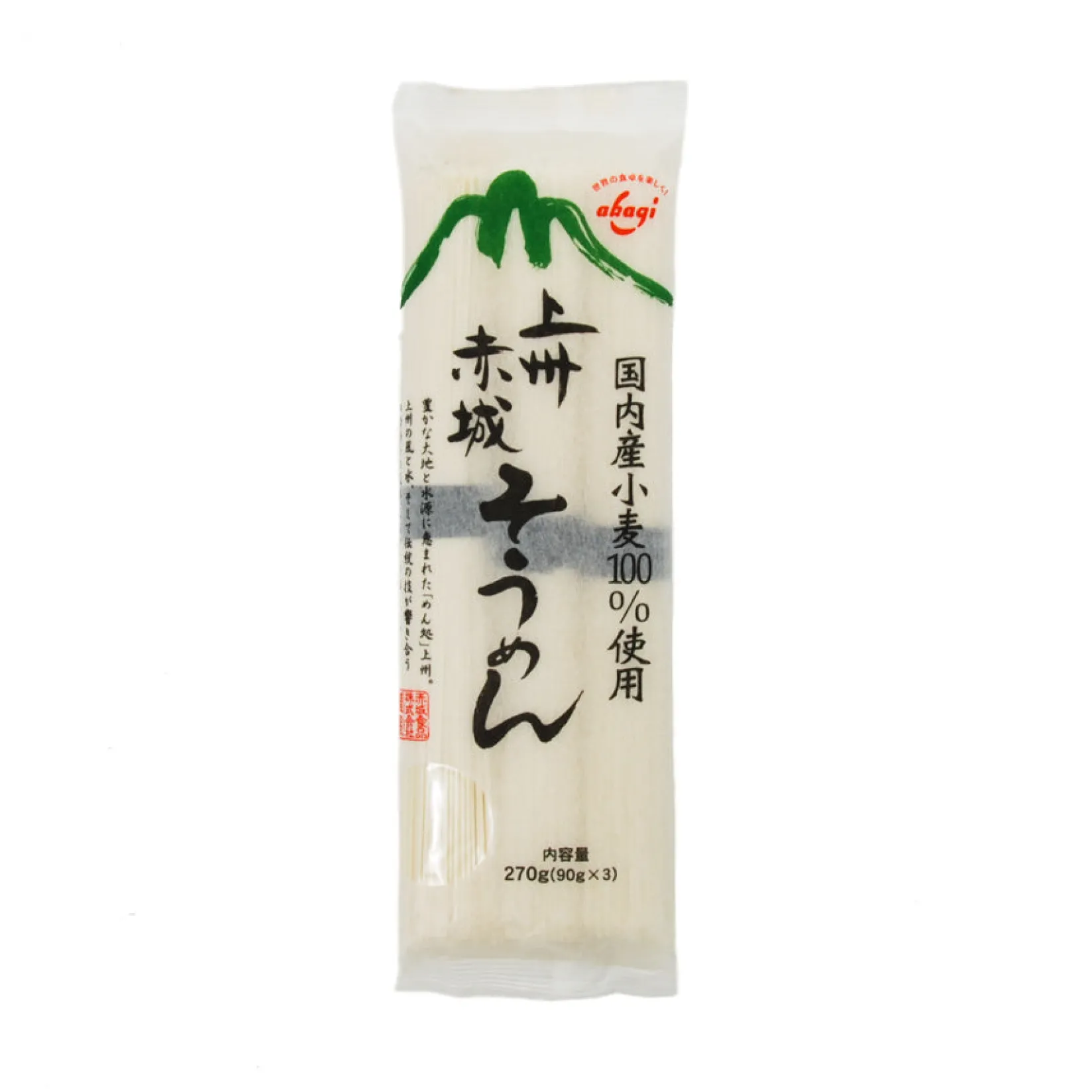 Akagi dried somen noodles are extremely quick to cook fine noodles, best enjoyed cold with a bonito-based dipping sauce. Or if you prefer, just use the somen noodles like an instant noodle and simmer in stock with mushrooms and very finely sliced meat or vegetables.