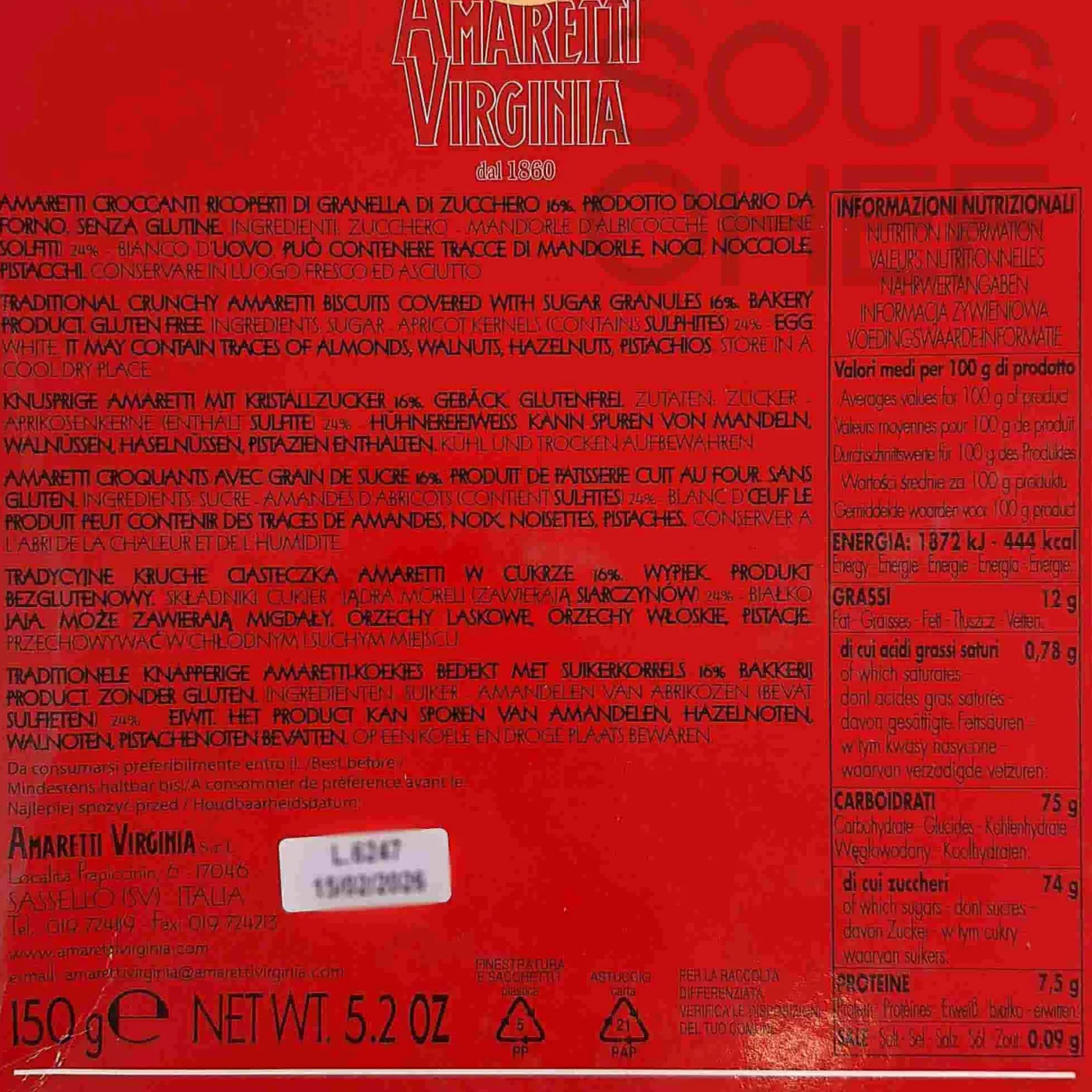 Founded in 1860, Amaretti Virginia is famous for its superb Italian biscuits and confectionery. Their amaretti biscuits are renowned for their soft texture and alluring almond aroma. The bakery that once produced the amaretti became so popular that the square it overlooked was referred to as ‘Piazza degli Amaretti Virginia’ in postcards of the time. Amaretti Virginia now produces a wide range of Italian treats in sweet and fruity flavours. They make wonderful gifts for friends and family.