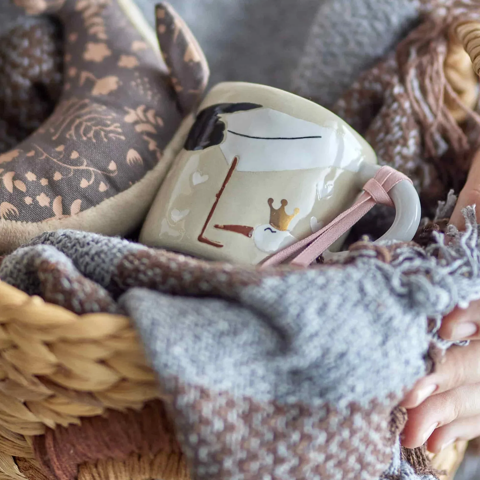 The Bambino mug has a playful stork motif. It’s perfect for bird lovers and baby showers. The mug is made from stoneware and glazed in a warm shade of beige.