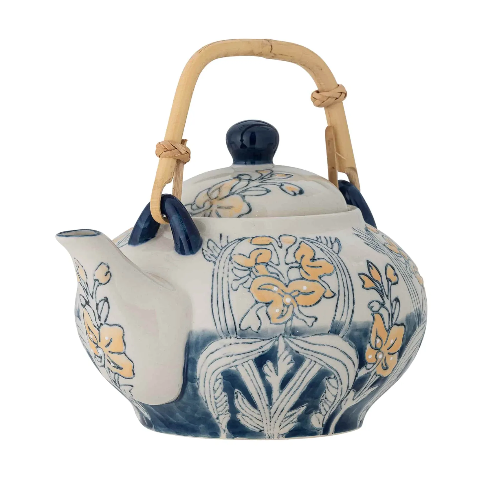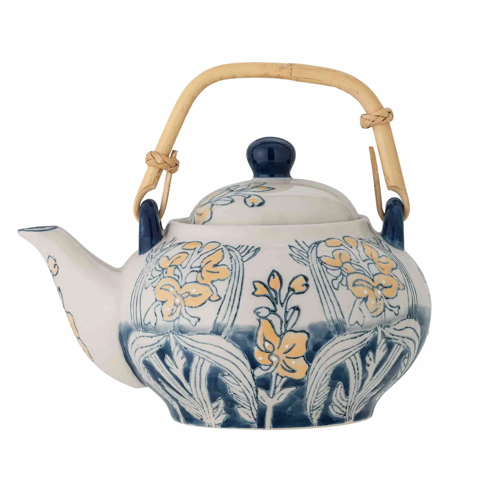 Brew loose leaf tea in the Myah floral teapot. It’s made from stoneware and has a unique bamboo handle. The style is reminiscent of teapots used in China and Japan.