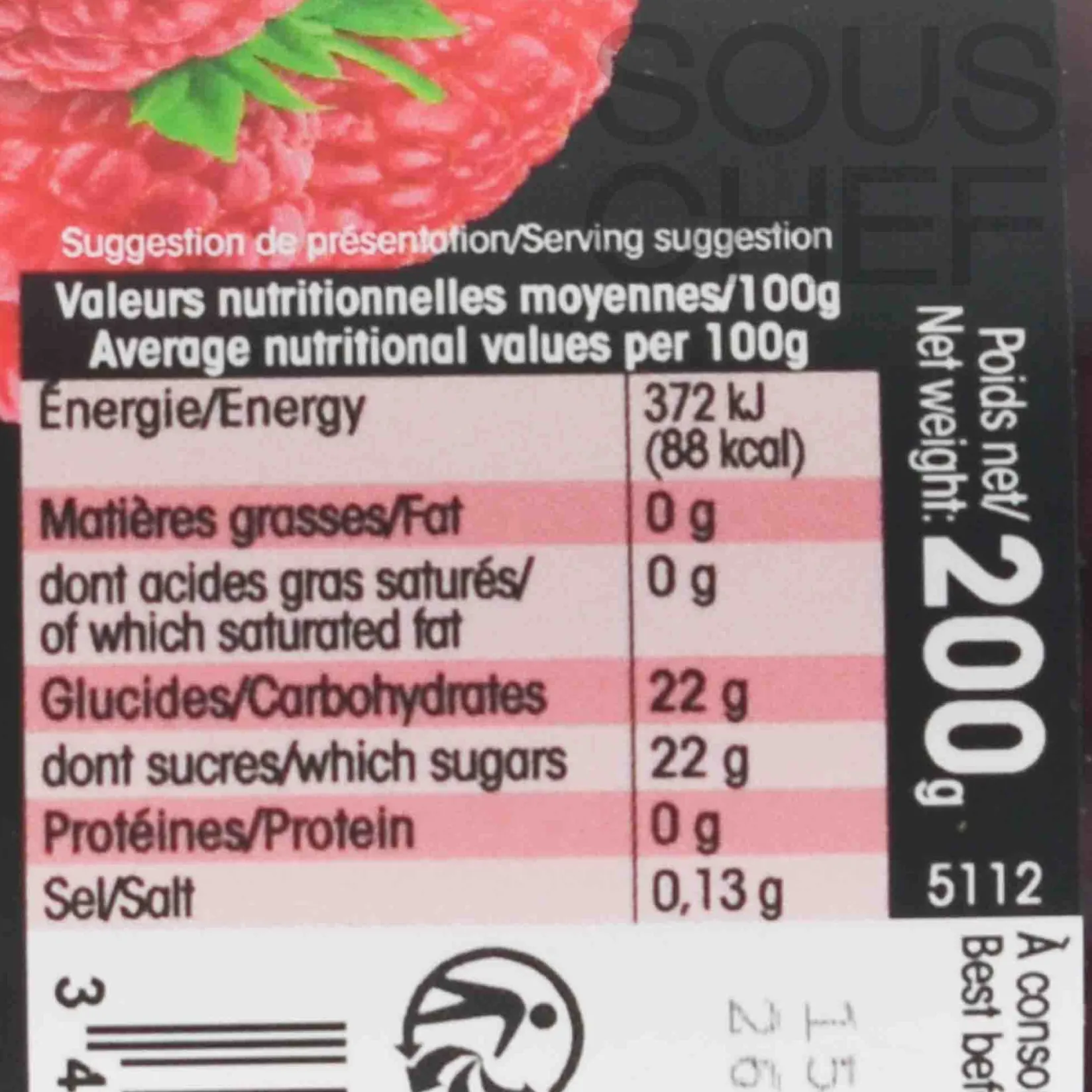 Product formulations and details may change. For the latest ingredients and allergen information always check product packaging prior to consumption. Ingredients: Mix made from raspberry (sugar, concentrated raspberry puree 18.6%, water, colouring: anthocyanins, natural flavouring, acidifying agent: citric acid, thickener: pectin, preservative: potassium sorbate)(EU)52.5%, water, thickener: cellulose gum; firming agent: calcium chloride, gelling agent: sodium alginate.