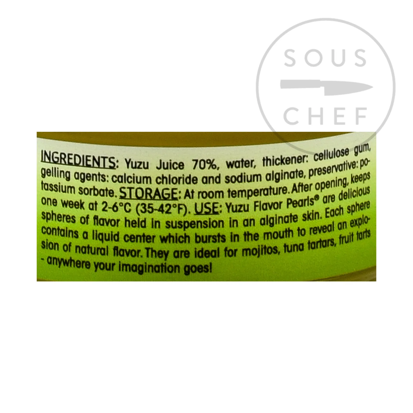 Enjoy the yuzu flavour pearls with oysters, in cocktails, or with Japanese-style fish dishes. The yuzu flavour pearls are pale lemon yellow colour, with a citrussy floral aroma from yuzu, the prized Japanese citrus fruit.