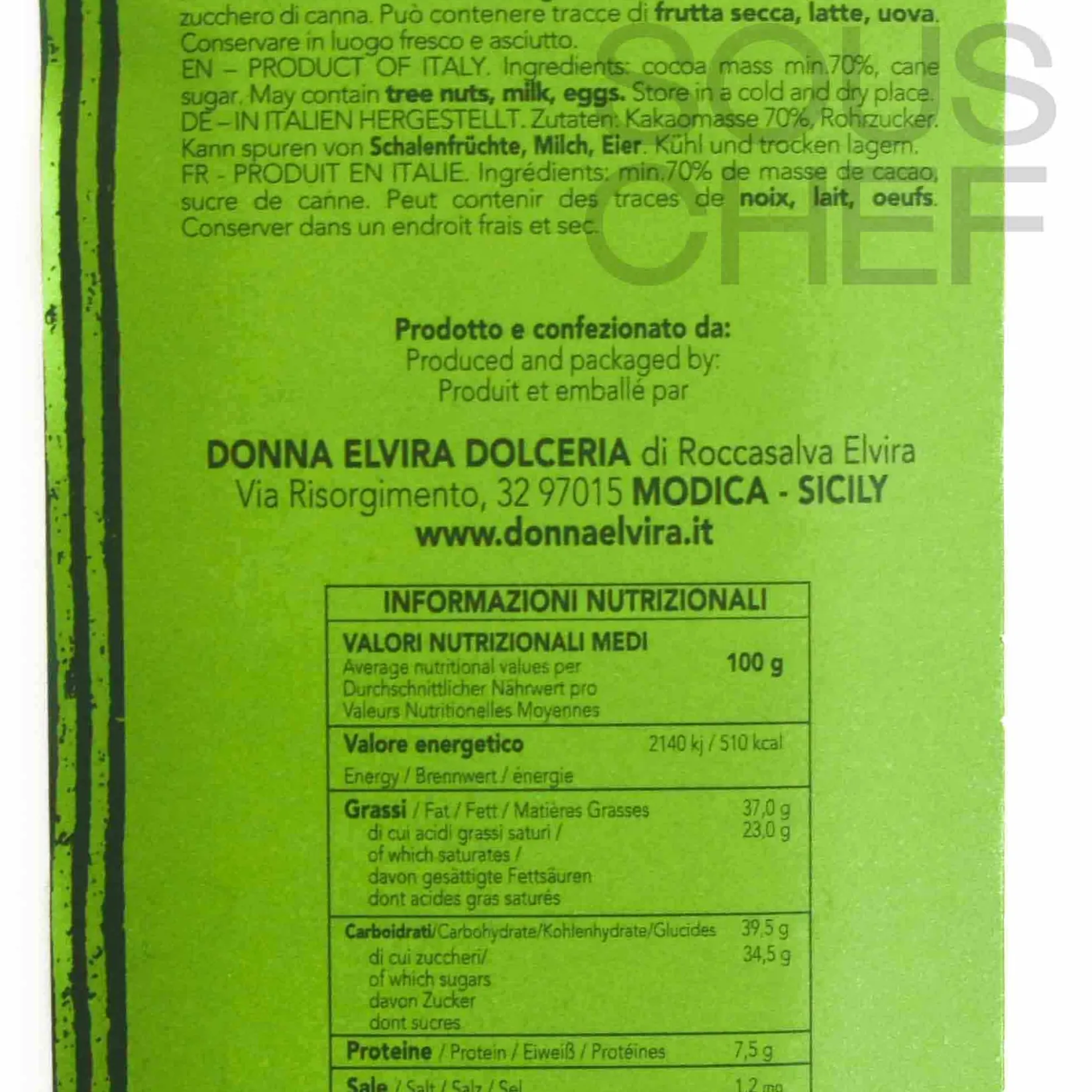 Chocolate & Sweets Chocolate Bars Donna Elvira Italian Sweets & Deserts Gluten Free Ingredients Italian Food & Ingredients Small Gifts Vegan Food & Ingredients