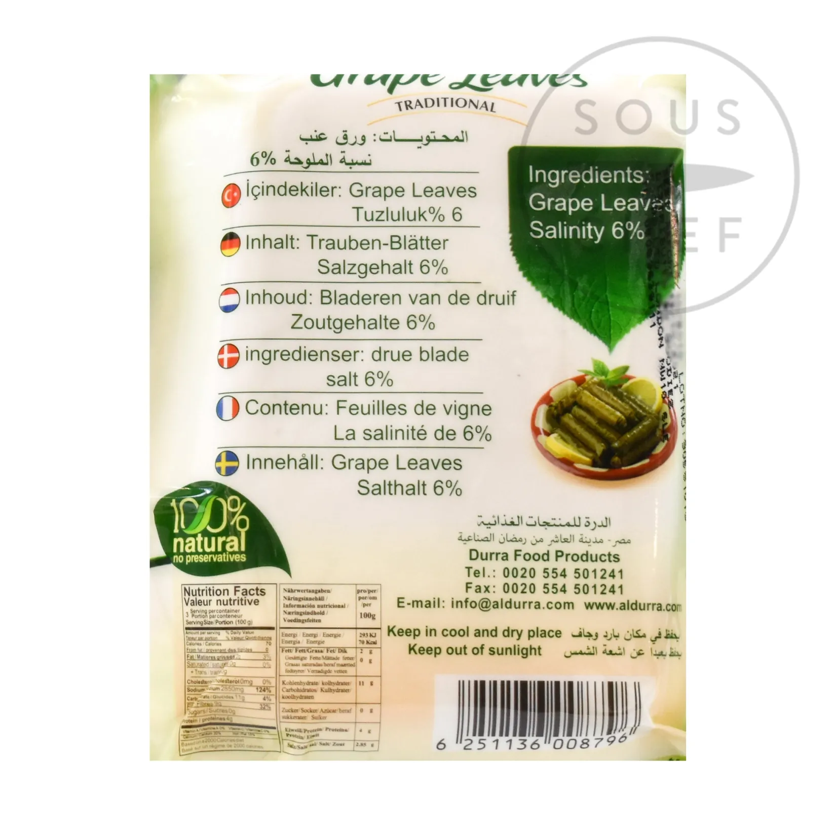 Product formulations and details may change. For the latest ingredients and allergen information always check product packaging prior to consumption. Ingredients: grape leaves salinity 6%.