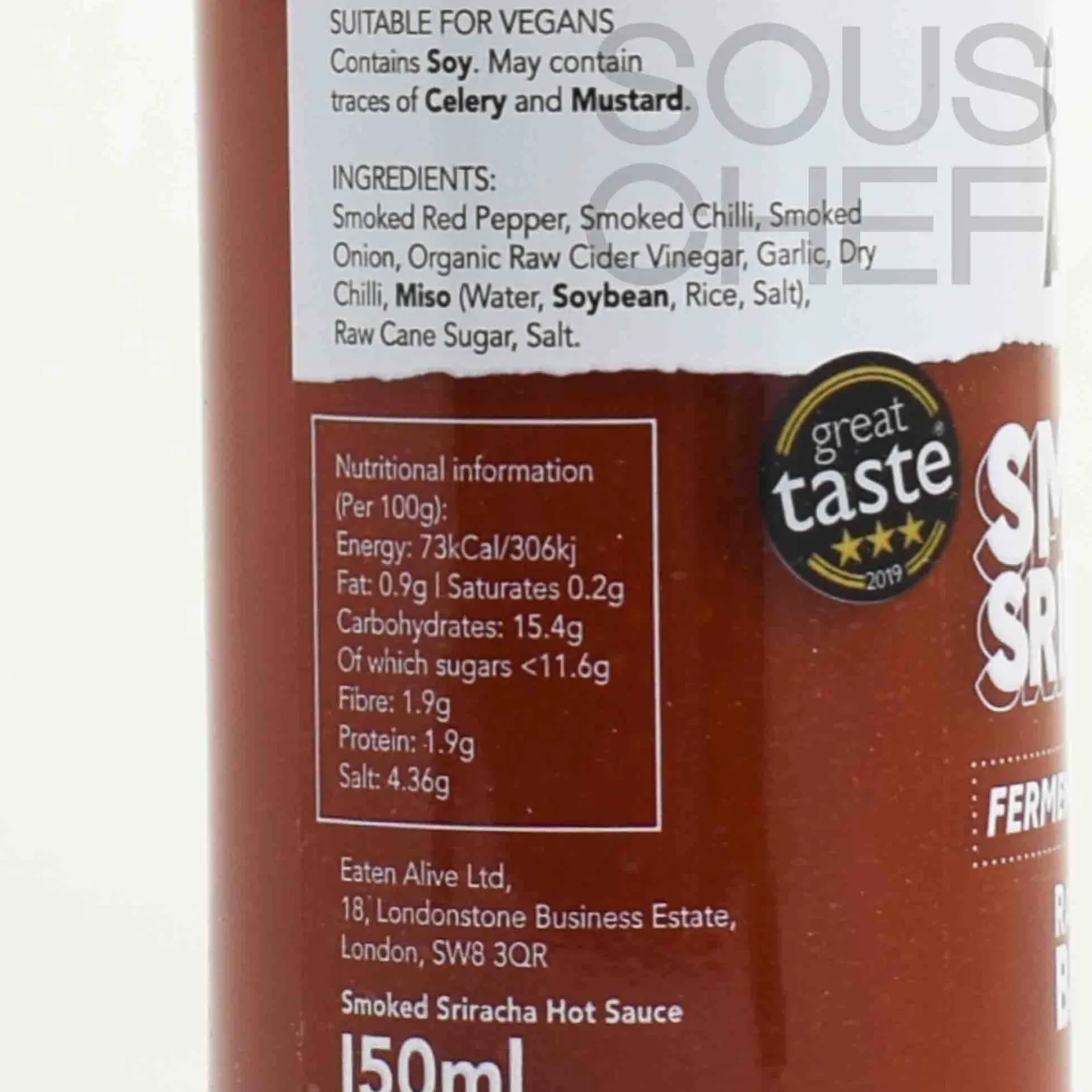 Eaten Alive smoked Sriracha hot sauce is 100% natural, vegan and bio-live.