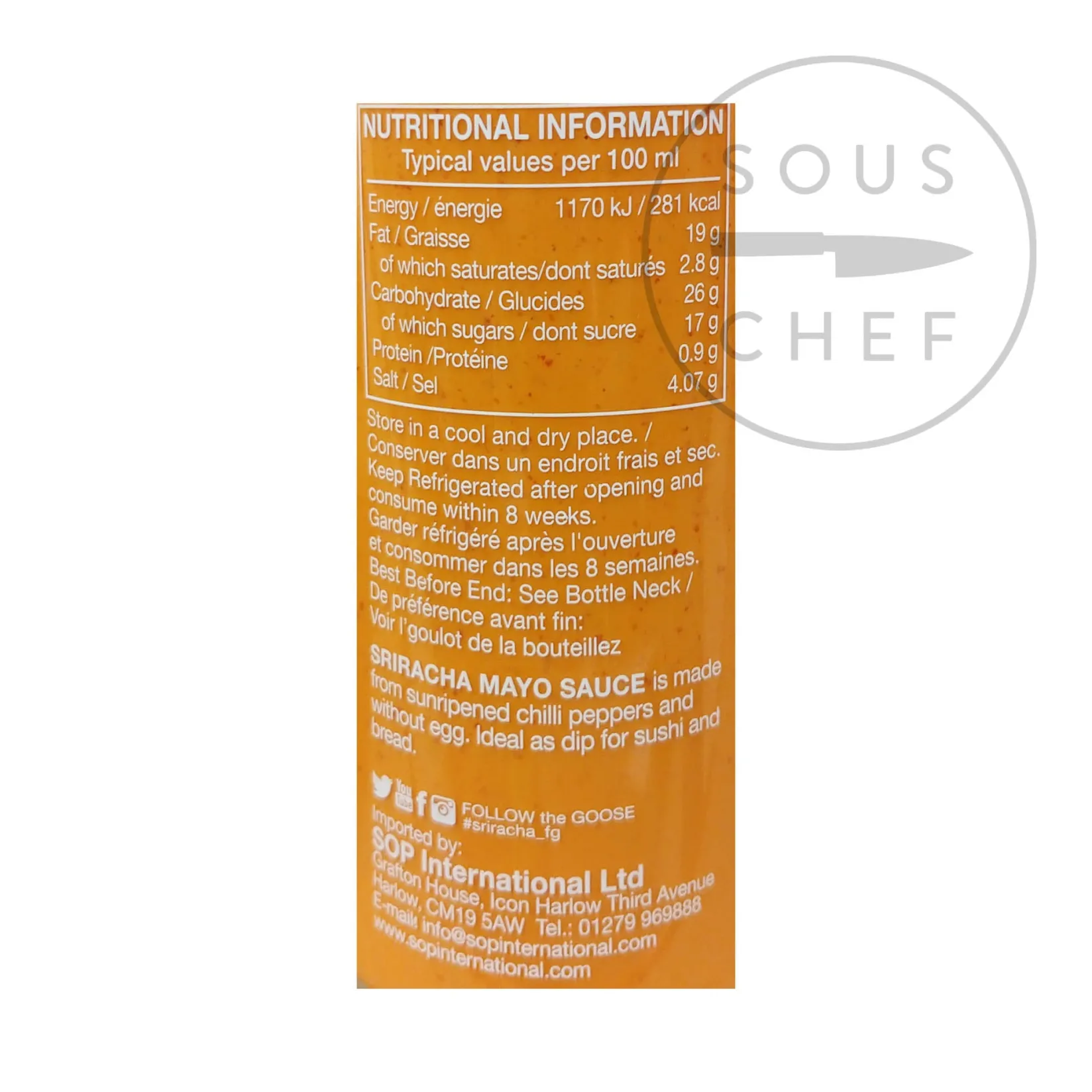Product formulations and details may change. For the latest ingredients and allergen information always check product packaging prior to consumption. Ingredients: water, chilli (20%), soy bean oil, sugar, distilled vinegar, modified corn starch, salt, thickener: E415, garlic, mustard seeds, acids: E260, E330, flavour enhancer: E621 (MSG), preservative: E202, antioxidant: E319, colour: E101. Contains allergens: soya, mustard. May contain traces of peanuts.