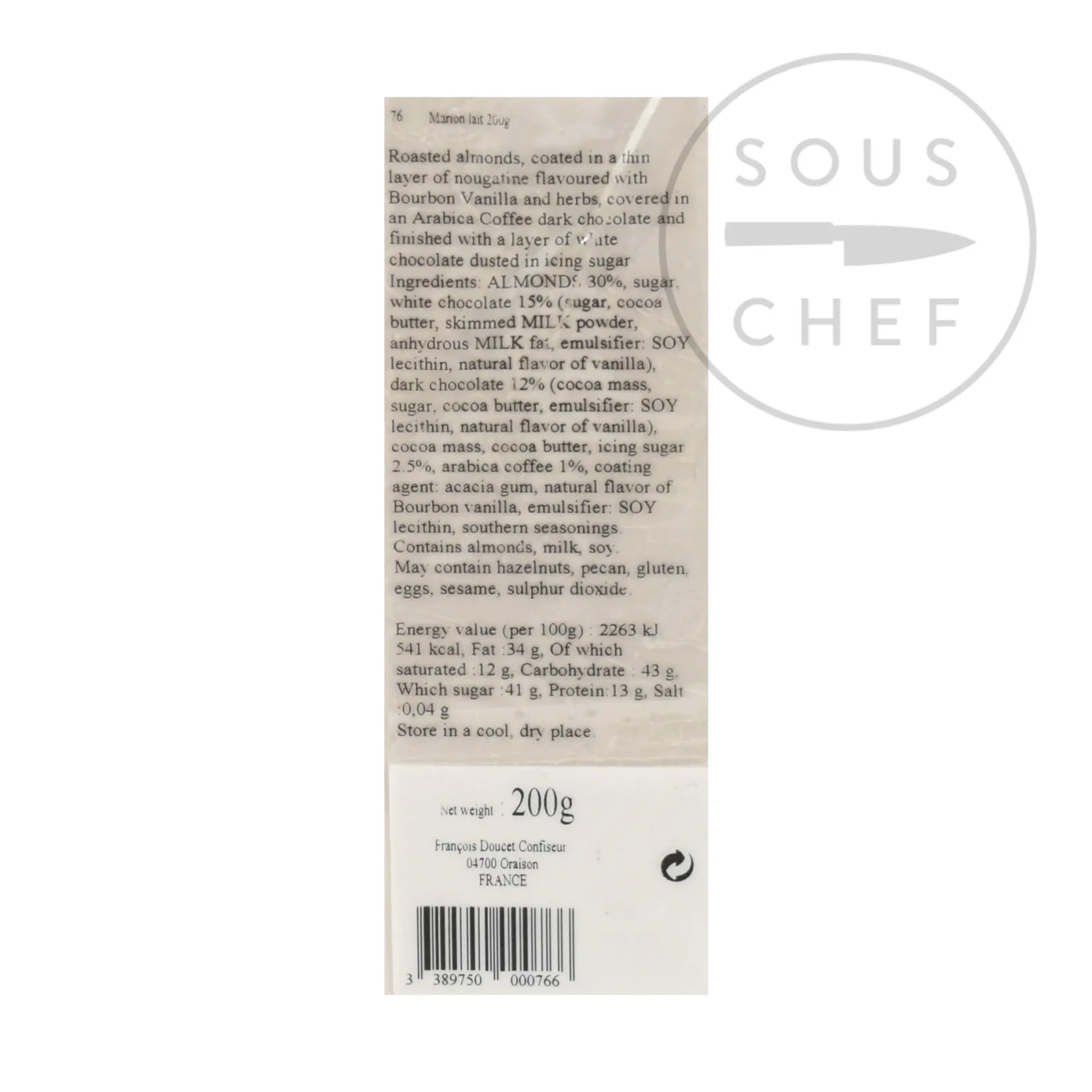 Product formulations and details may change. For the latest ingredients and allergen information always check product packaging prior to consumption. Ingredients: Almonds 30%, sugar, white chocolate 15% (sugar, cocoa butter, skimmed milk powder, anhydrous milk fat, emulsifier: soy lecithin, natural flavour of vanilla), dark chocolate 12% (cocoa mass, sugar, cocoa butter, emulsifier: soy lecithin, natural flavour of vanilla), cocoa mass, cocoa butter, icing sugar 2.5%, arabica coffee 1%, coating agent: acacia gum, natural flavour of Bourbon vanilla, emulsifier: soy lecithin, southern seasonings. May contain hazelnuts, pecan, gluten, eggs, sesame, sulphur dioxide. Allergens listed in bold.