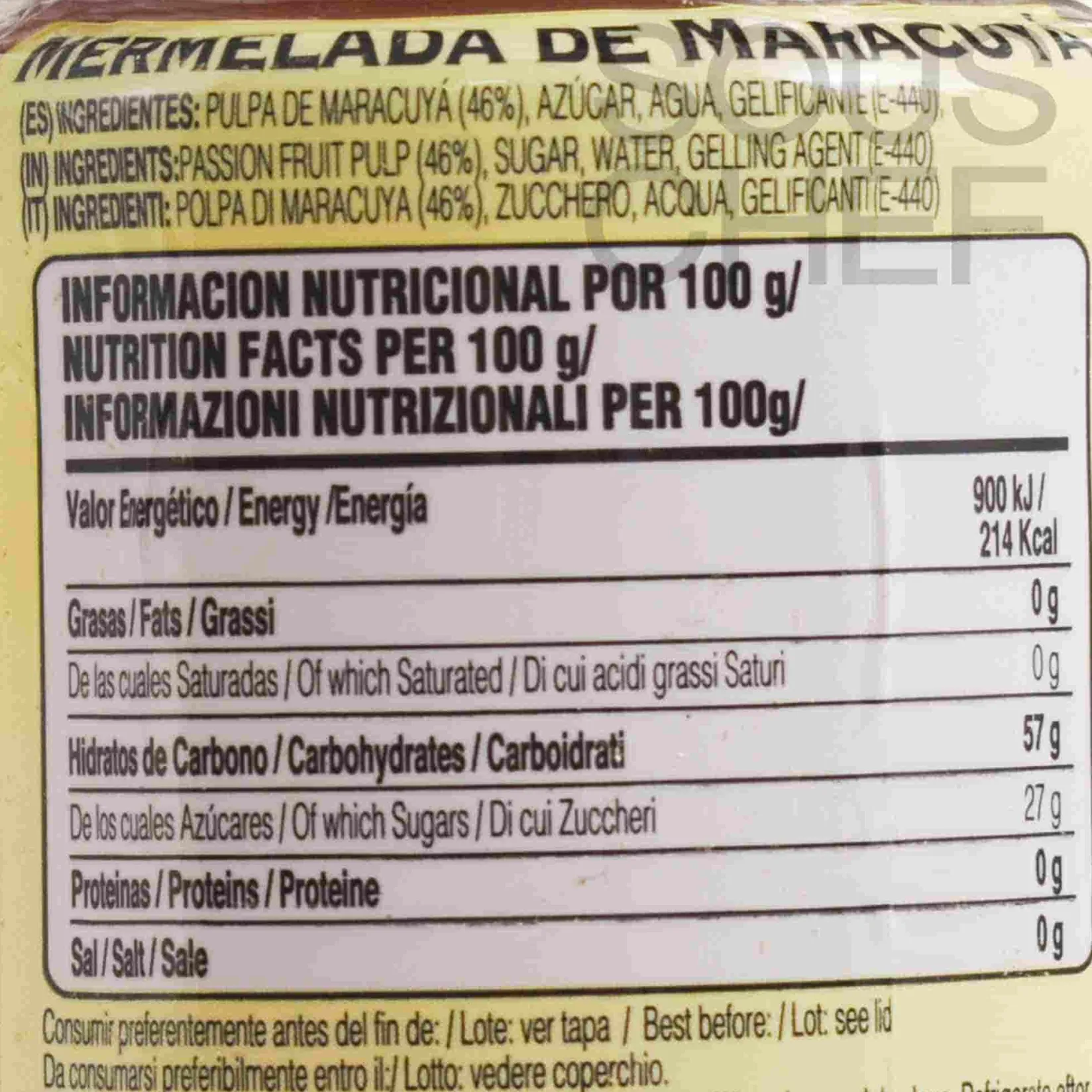 Product formulations and details may change. For the latest ingredients and allergen information always check product packaging prior to consumption. Ingredients: Passion fruit pulp, sugar, water, gelling agent: pectin