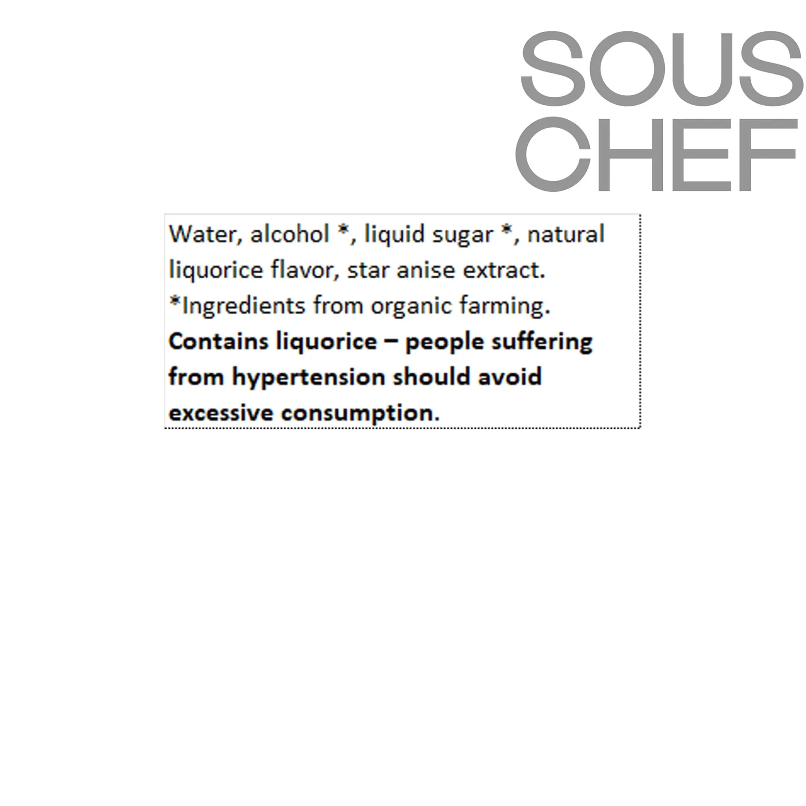Product formulations and details may change. For the latest ingredients and allergen information always check product packaging prior to consumption. Ingredients: Water, alcohol *, liquid sugar *, natural licorice flavor, star anise extract. * ingredients from organic farming.