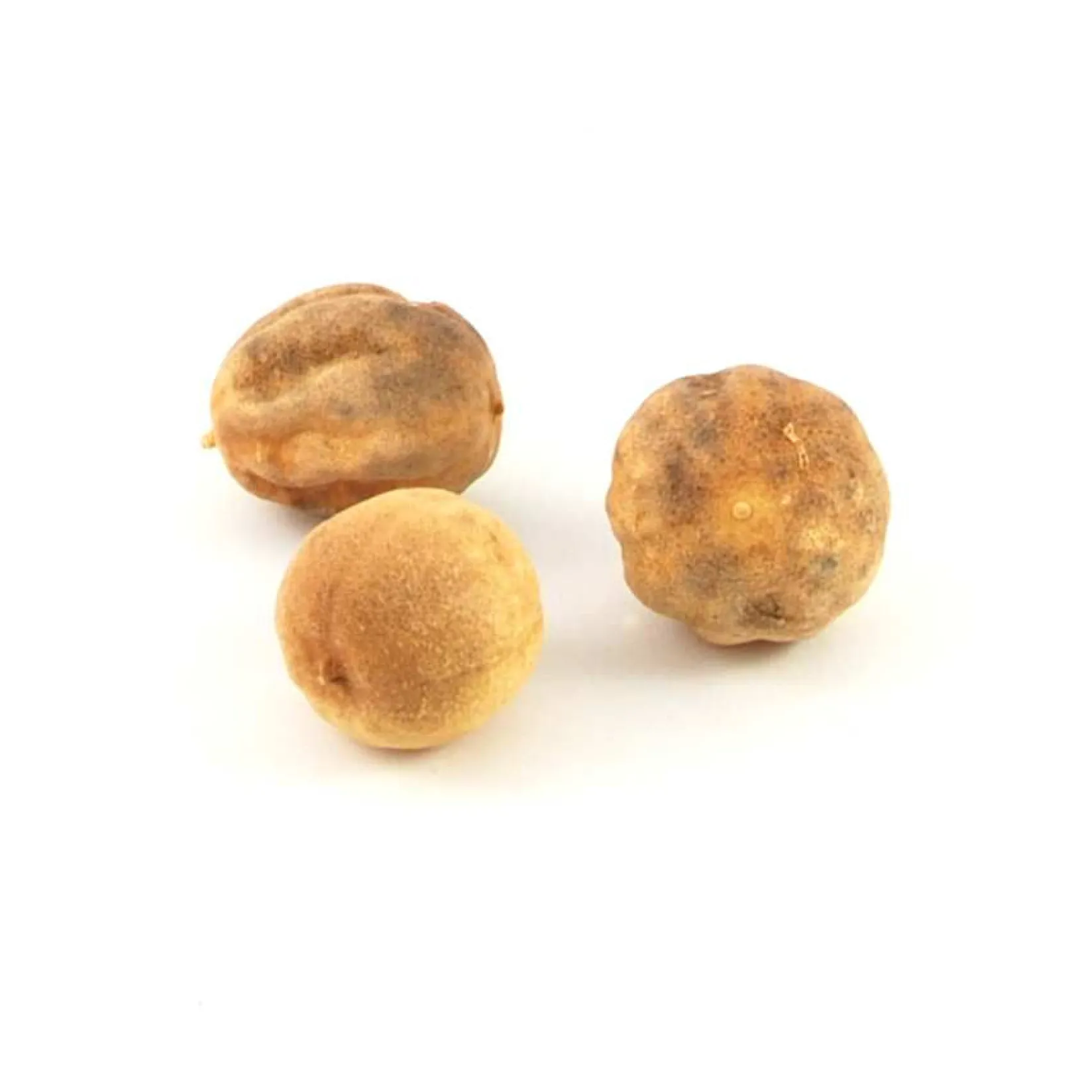 Dried white limes, also known as dried limes or dried limes, infuse sauces with complex citrus flavours and subtle fermented notes. Dried white limes are made from ripe, green limes which have been soaked in brine. They are then left to dry in the sun until their skin to turns hard and they develop delicate, fermented notes. The drying period is not as long as with black limes, so they remain a lighter shade and are able take on the colour of the food they are cooked in.
