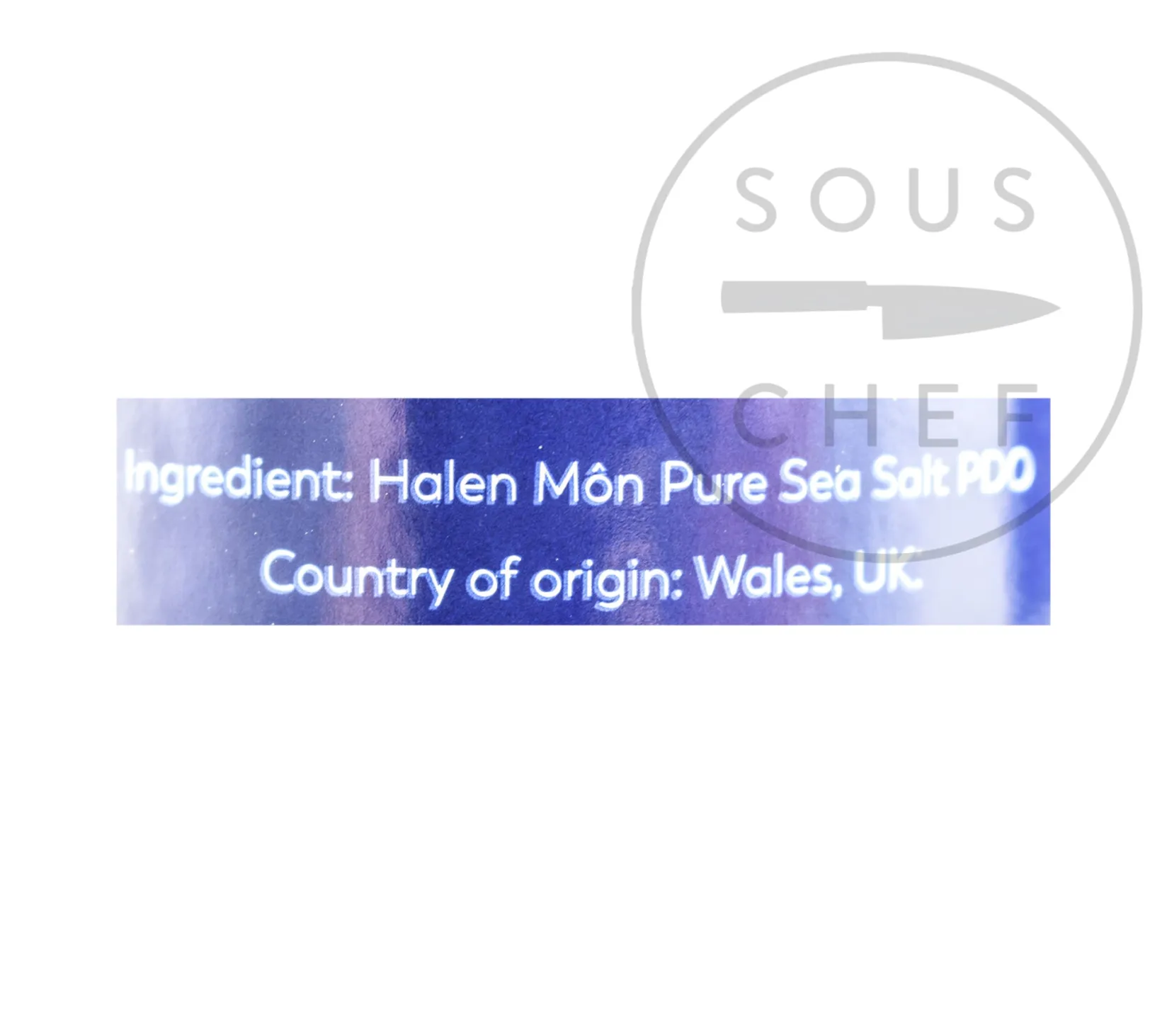 Product formulations and details may change. For the latest ingredients and allergen information always check product packaging prior to consumption. Ingredients: Halen Môn Pure Sea Salt PDO
