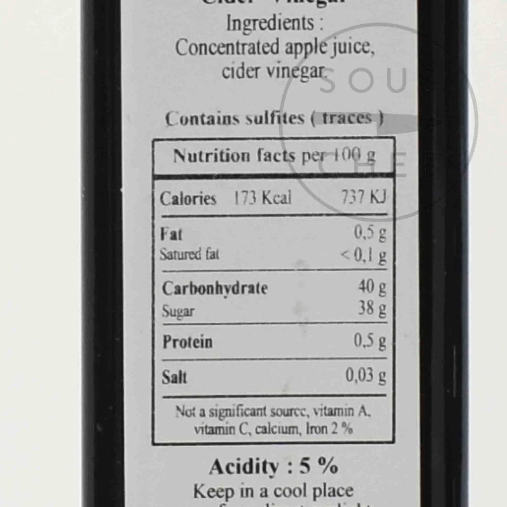 Product formulations and details may change. For the latest ingredients and allergen information always check product packaging prior to consumption. Ingredients: Cider vinegar, apple juice concentrated. Contains traces of sulphites.