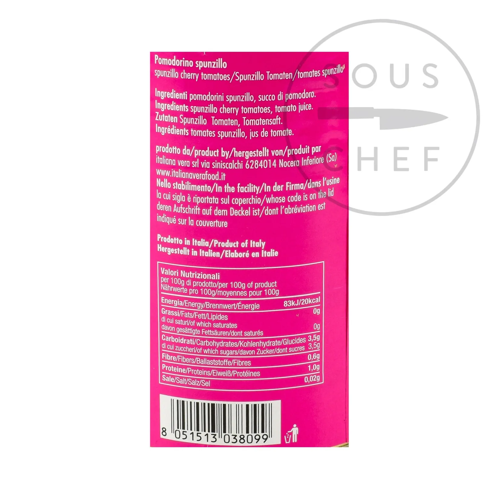 Product formulations and details may change. For the latest ingredients and allergen information always check product packaging prior to consumption. Ingredients: Spunzillo cherry tomatoes, tomato juice.