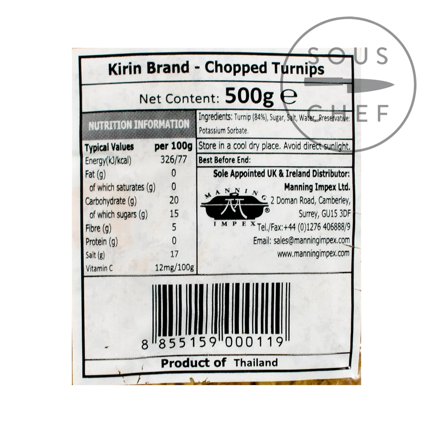 Product formulations and details may change. For the latest ingredients and allergen information always check product packaging prior to consumption. Ingredients: Turnip (84%), sugar, salt, water, preservative: Potassium Sorbate