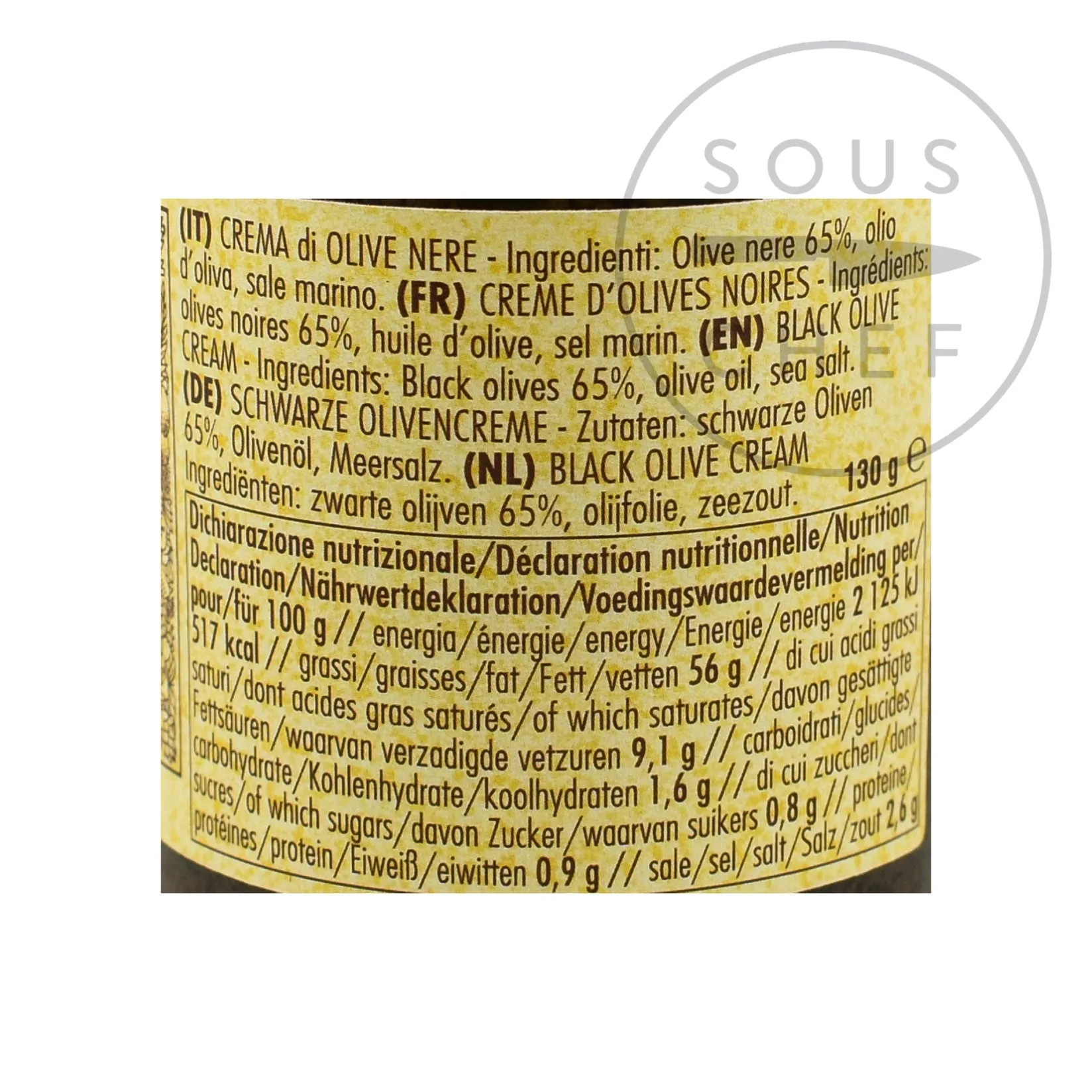 Product formulations and details may change. For the latest ingredients and allergen information always check product packaging prior to consumption. Ingredients: Black olives 65%, olive oil, sea salt