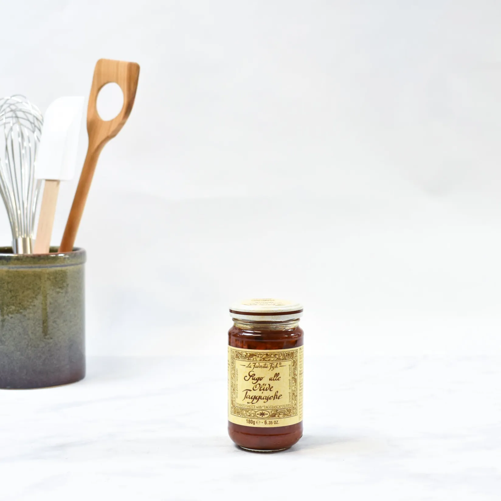 Taggiasca olives are native olive variety to the Liguria region. The combination of olives and tomatoes is stunning as it is with plain pasta, or customise the sauce with garlic or chilli. It’s also a great base for homemade pizzas.