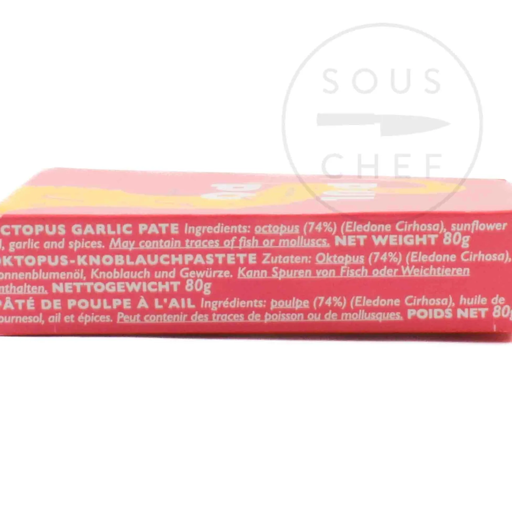 This La Narval octopus and garlic paté is a delicious addition to any picnic or Tapas feast. Salty, meaty octopus is beautifully balanced with garlic and lightly spiced. These delicious flavours are then blended for a smooth and creamy paste. Perfect to spread on fresh bread, crackers or enrich a Spanish seafood stew.