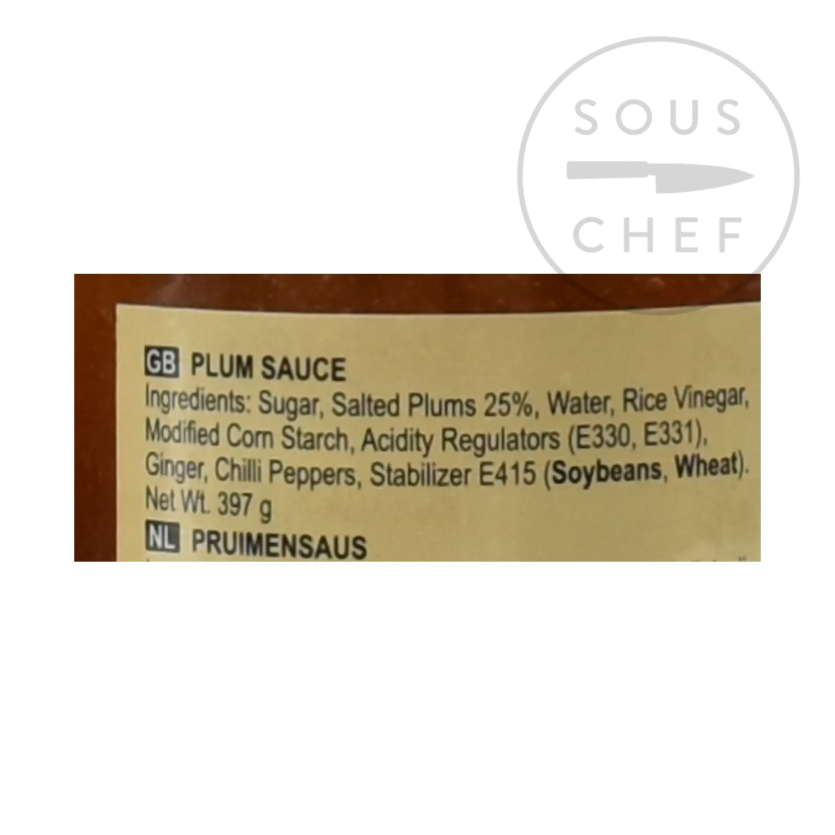 Product formulations and details may change. For the latest ingredients and allergen information always check product packaging prior to consumption. Ingredients: Sugar, salted plums 25%, water, rice vinegar, modified corn starch, acidity regulators (E330, E331), ginger, chilli peppers, stabilizer E415 (soybeans, wheat) Allergens are listed in bold.