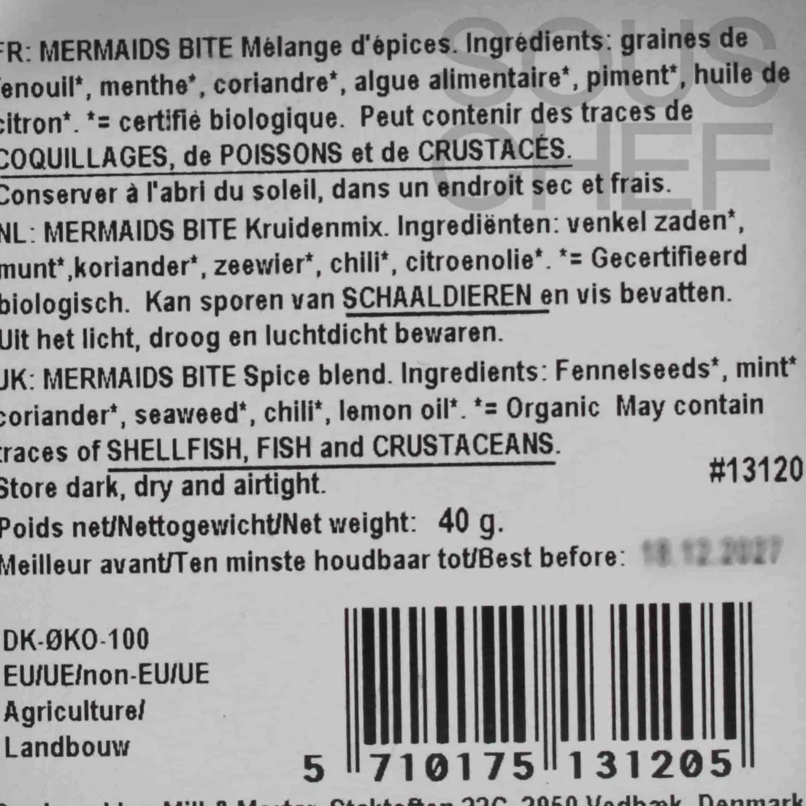 Product formulations and details may change. For the latest ingredients and allergen information always check product packaging prior to consumption. Ingredients: Fennel *, mint *, coriander *, dried seaweed, chili *, lemon oil*