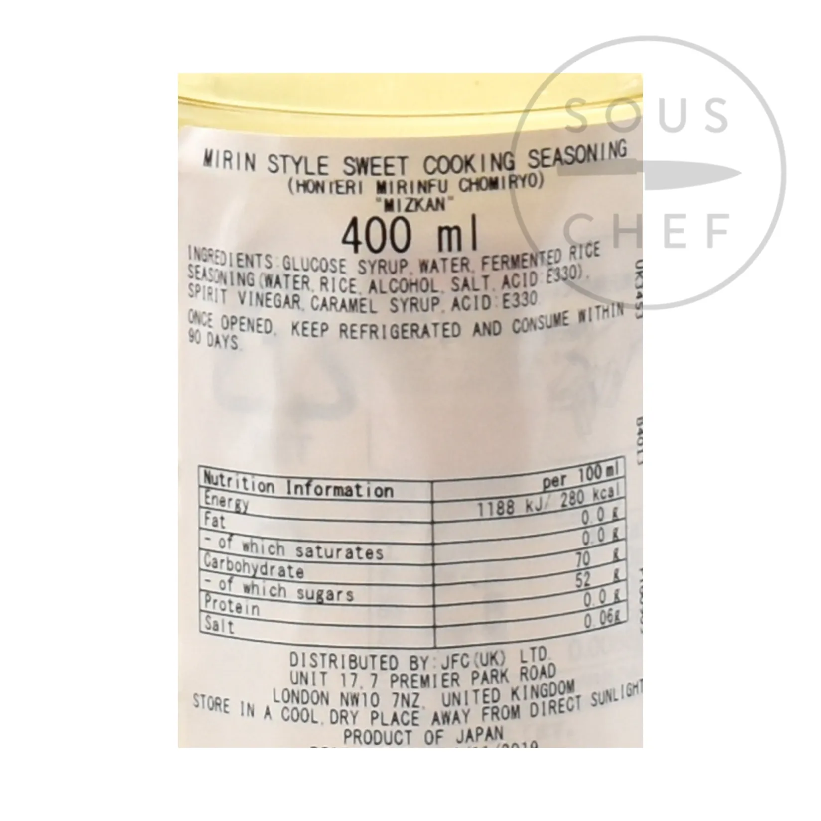Product formulations and details may change. For the latest ingredients and allergen information always check product packaging prior to consumption. Ingredients: glucose syrup, water, fermented rice seasoning (water, rice, alcohol, salt and acid E330), spirit vinegar, caramel syrup, acid: E330 [Max alcohol 0.5%].