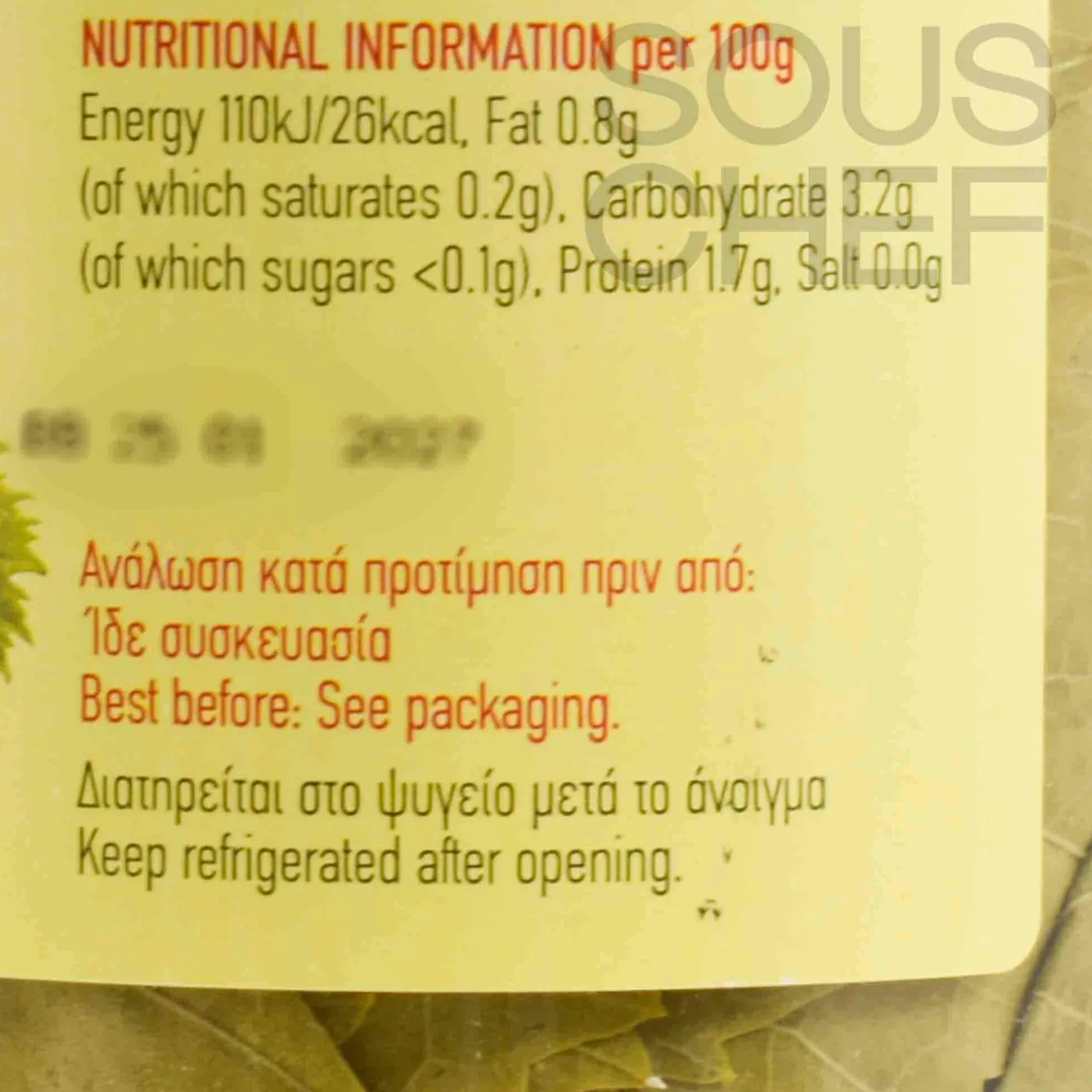 Product formulations and details may change. For the latest ingredients and allergen information always check product packaging prior to consumption. Ingredients: Vine leaves (sultanina variety).