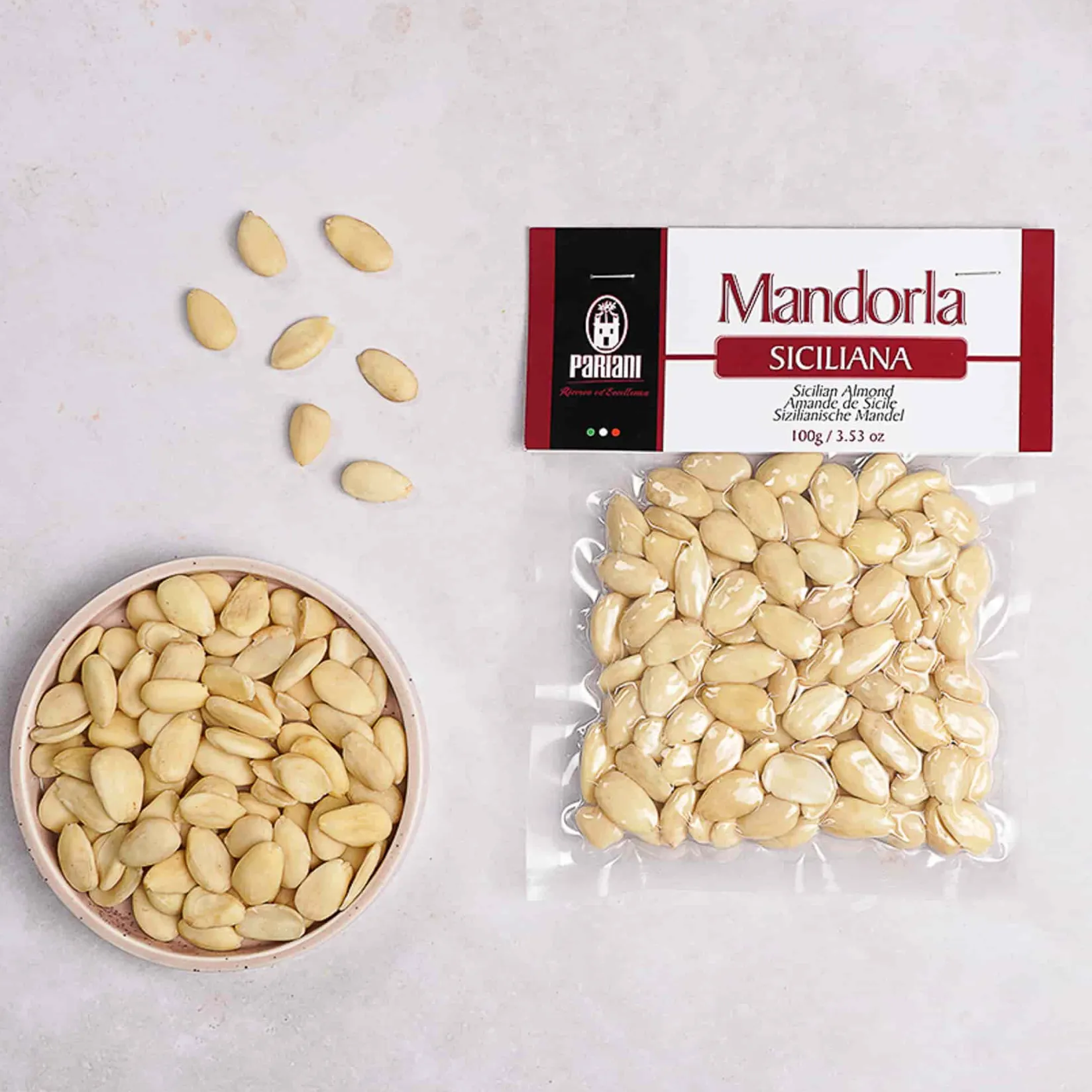 Sicilian almonds are also great served as an aperitif with sparkling wine. Toast in a dry pan and season simply with salt, or get creative and season with spices.