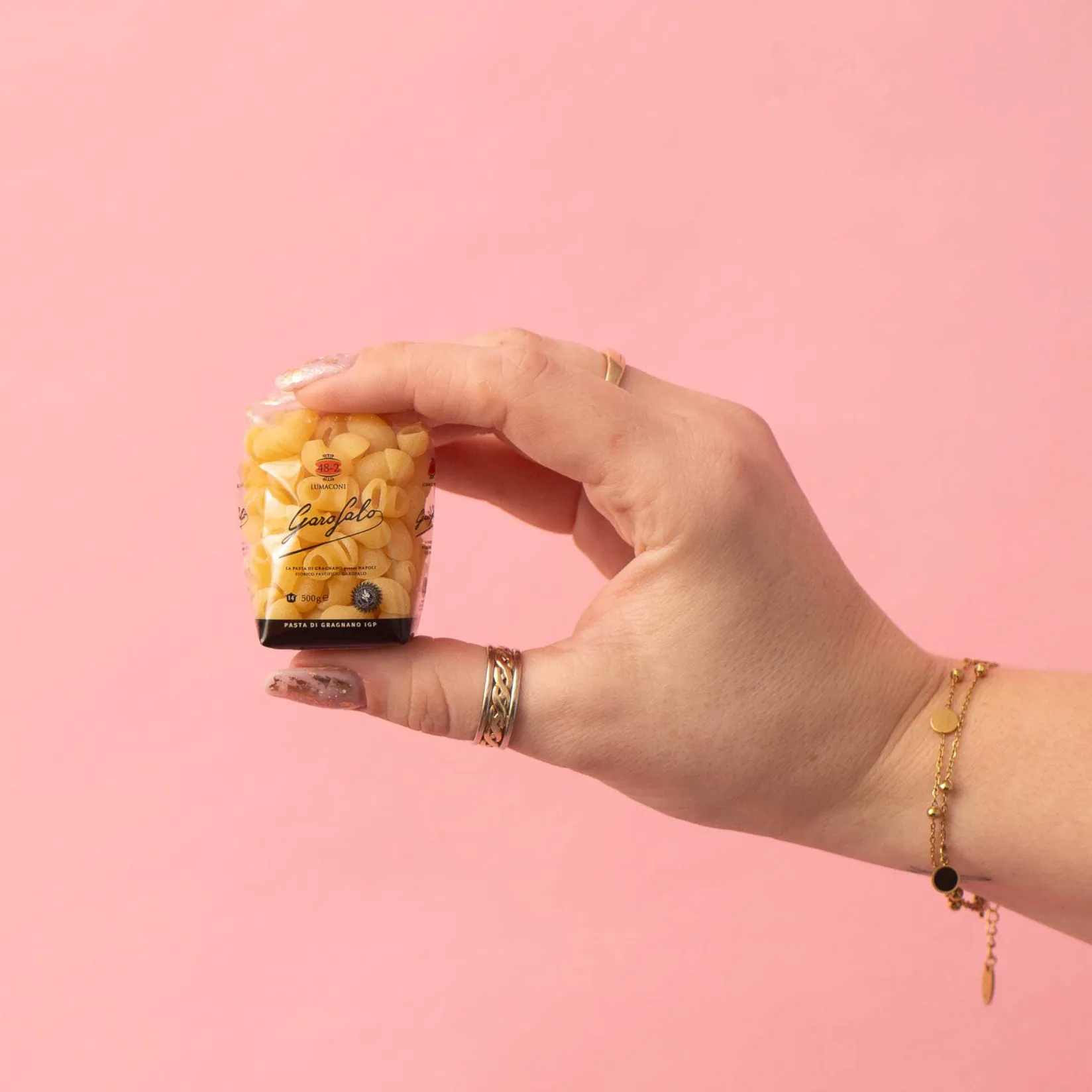 Inspired by Garofalo’s distinctive packaging, the magnet looks just like a bag of dried lumaconi pasta. This pasta shape is inspired by snail shells – ideal for stuffing with ricotta or tossing with a rich tomato sauce. Display it proudly on your fridge to celebrate your love of Italian pasta!