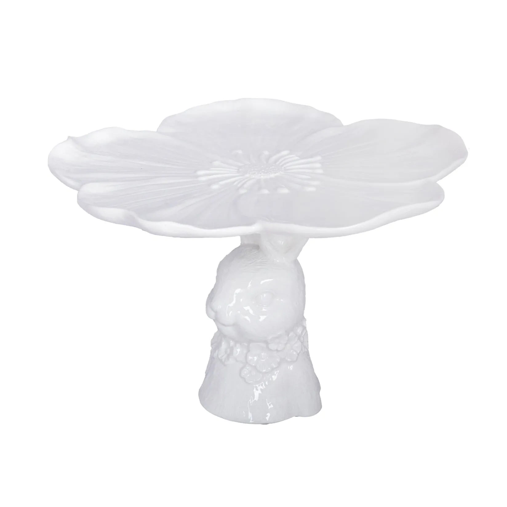 Host afternoon tea in style with this bunny cake stand. It features a flower-shaped plate resting on the ears of a white rabbit. It’s beautifully detailed, right down to the rabbit’s fur.