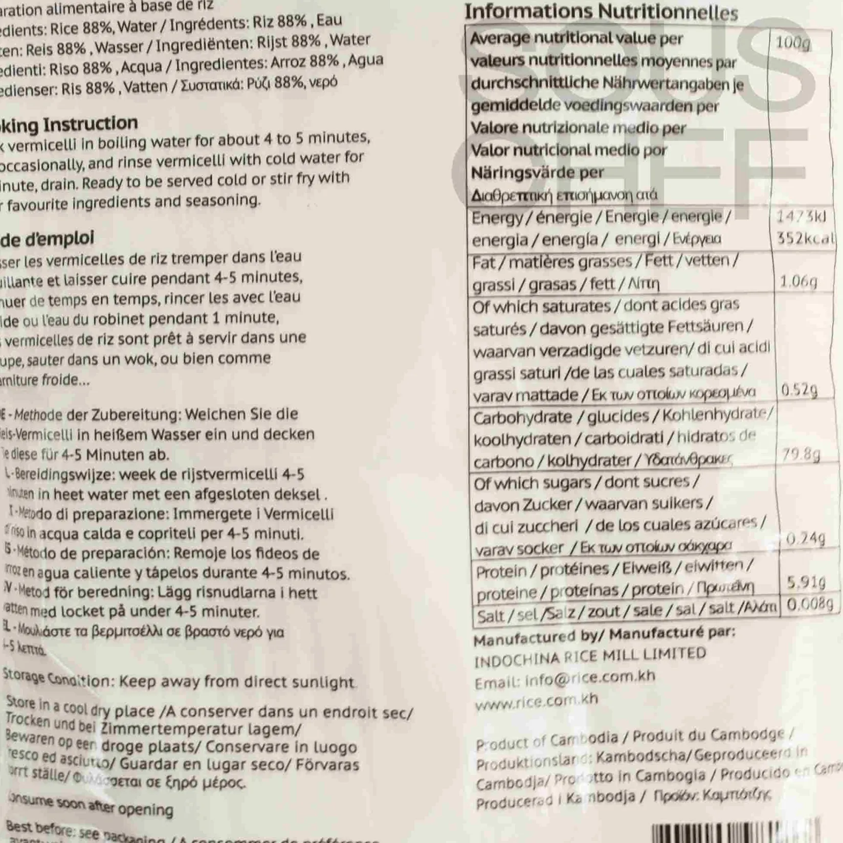 YinSi rice vermicelli are made from two Product formulations and details may change. For the latest ingredients and allergen information always check product packaging prior to consumption. Ingredients: rice and water. The fine noodles can be served hot or cold in soups, salads and stir fries.