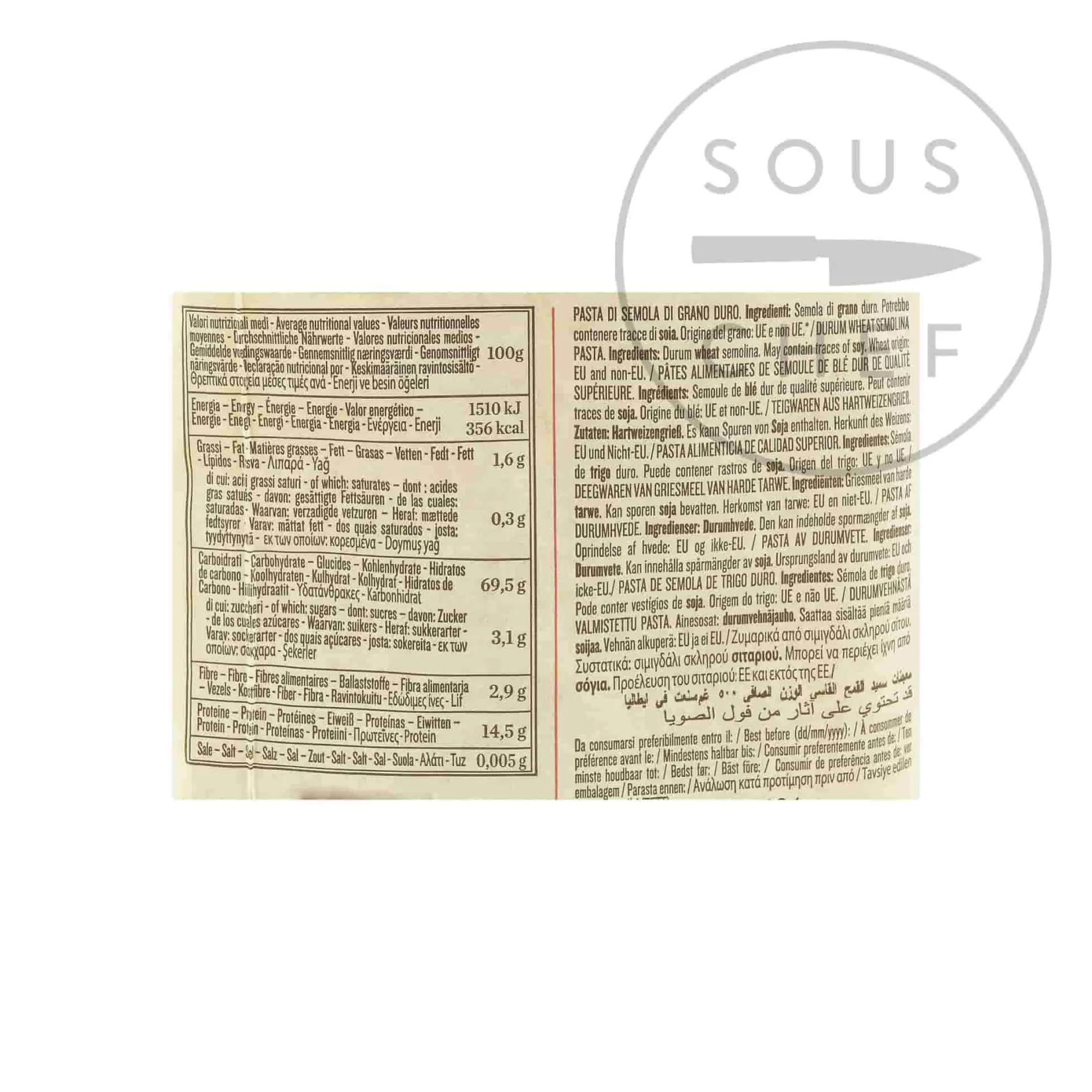 Product formulations and details may change. For the latest ingredients and allergen information always check product packaging prior to consumption. Ingredients: durum wheat semolina. Allergens are listed in bold.