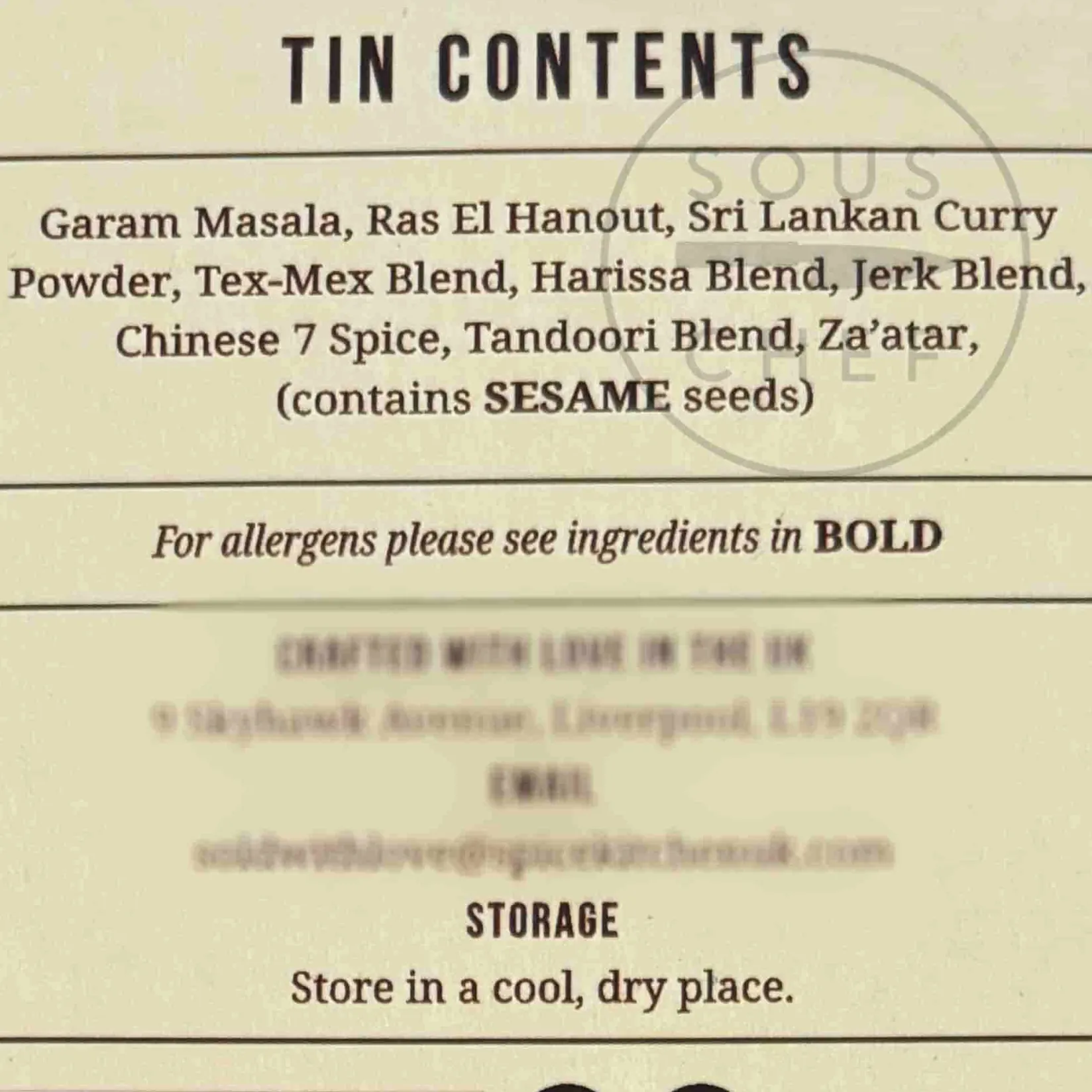 The world spice tin contains: