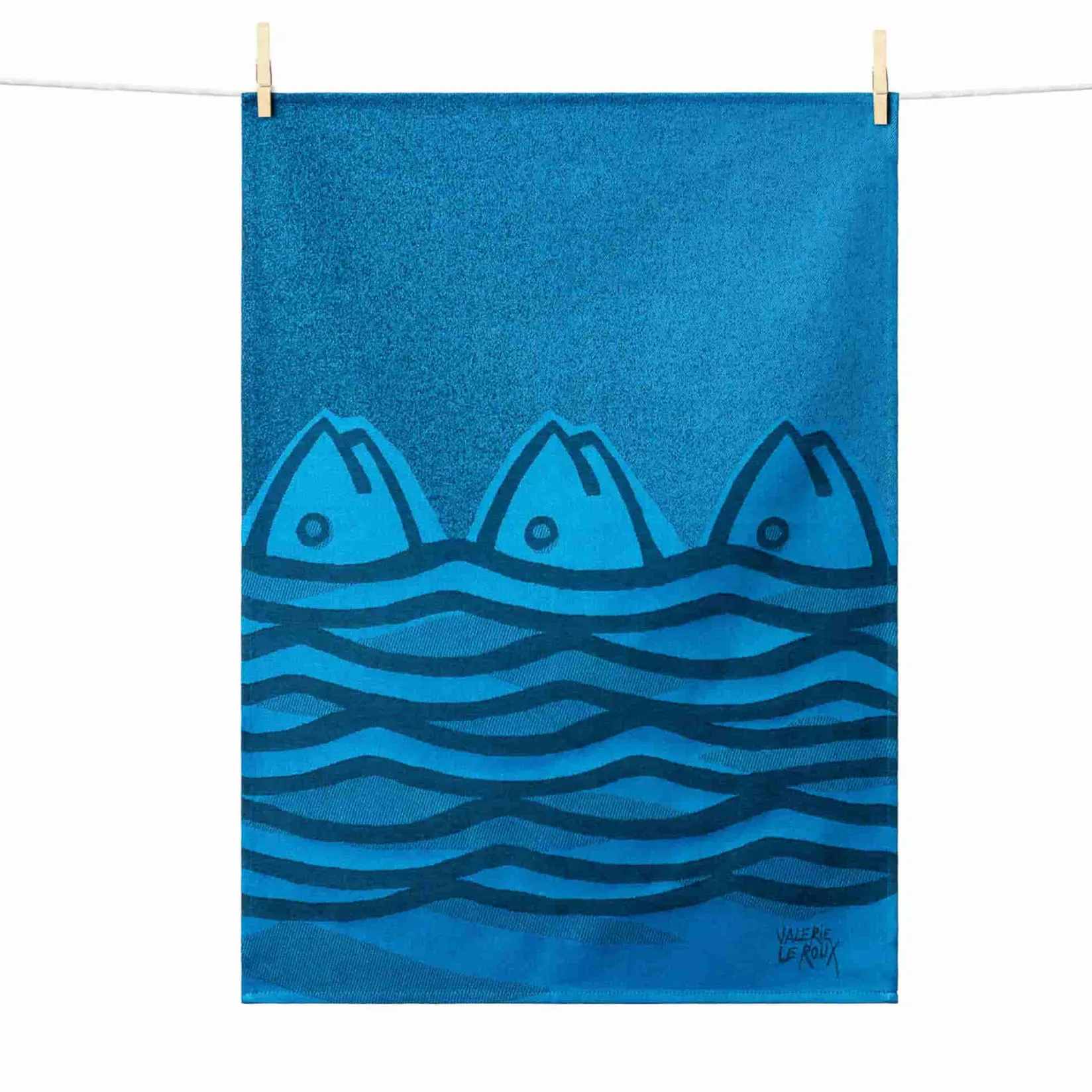 This French sardines tea towel brings seaside chic to your kitchen. It’s made from 100% cotton with a woven fish design. Their heads bob above stylised waves in shades of blue.