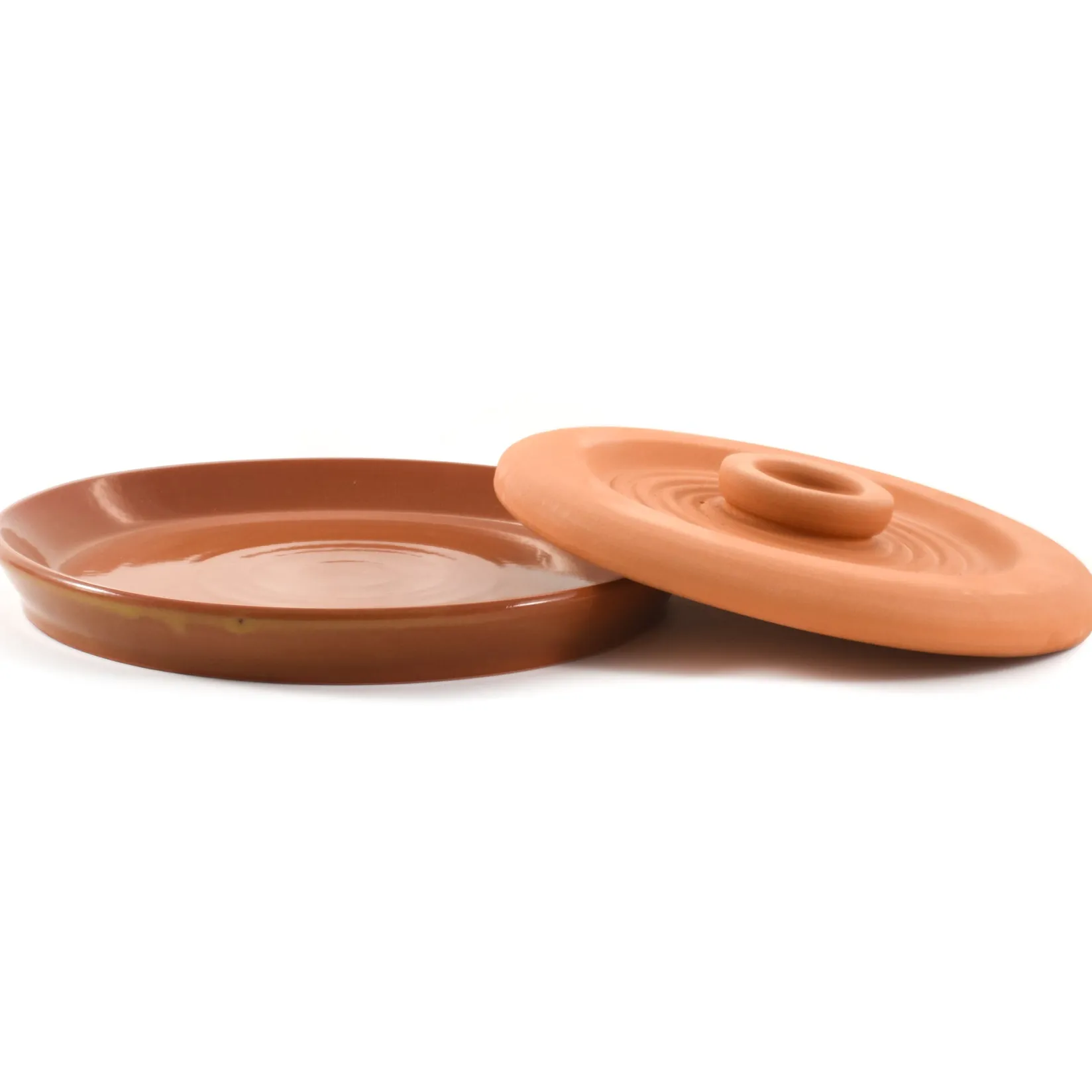This brick chicken cooker has a 30cm diameter and is 5cm in depth including the lid.