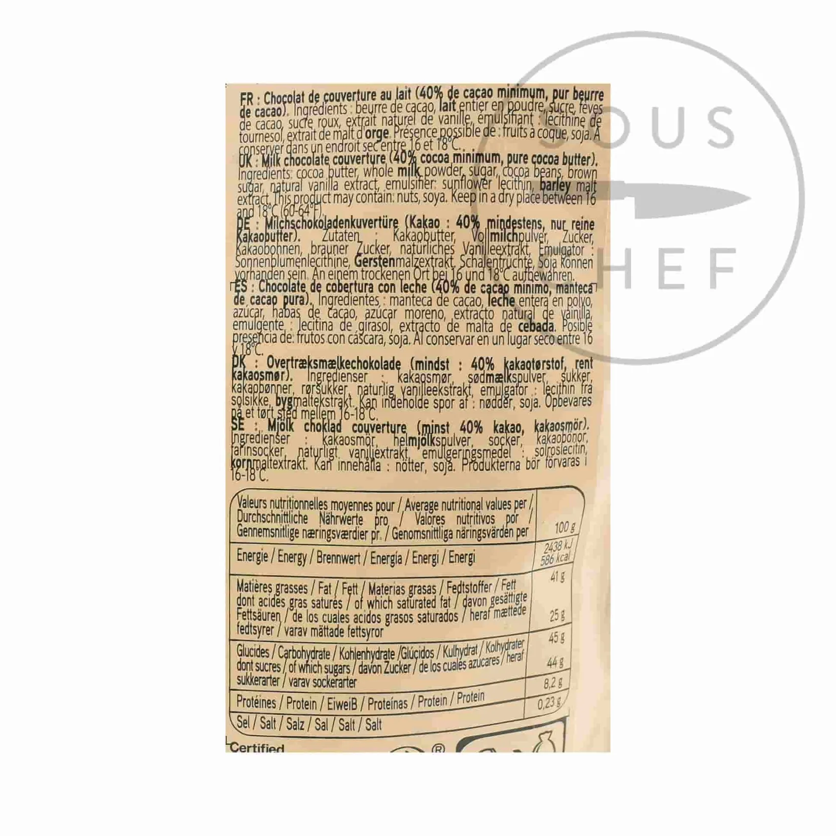 Valrhona Jivara milk chocolate couverture has rich creamy and caramelised notes – with a touch of malt and brown sugar to enhance the complexity of the chocolate. The velvety Jivara chocolate contains a minimum of 40% cocoa solids. The individually moulded couverture chocolate chips are perfect for baking as they’re easy to weigh out and very quick to melt with their trademark Valrhona feves or bean shape.