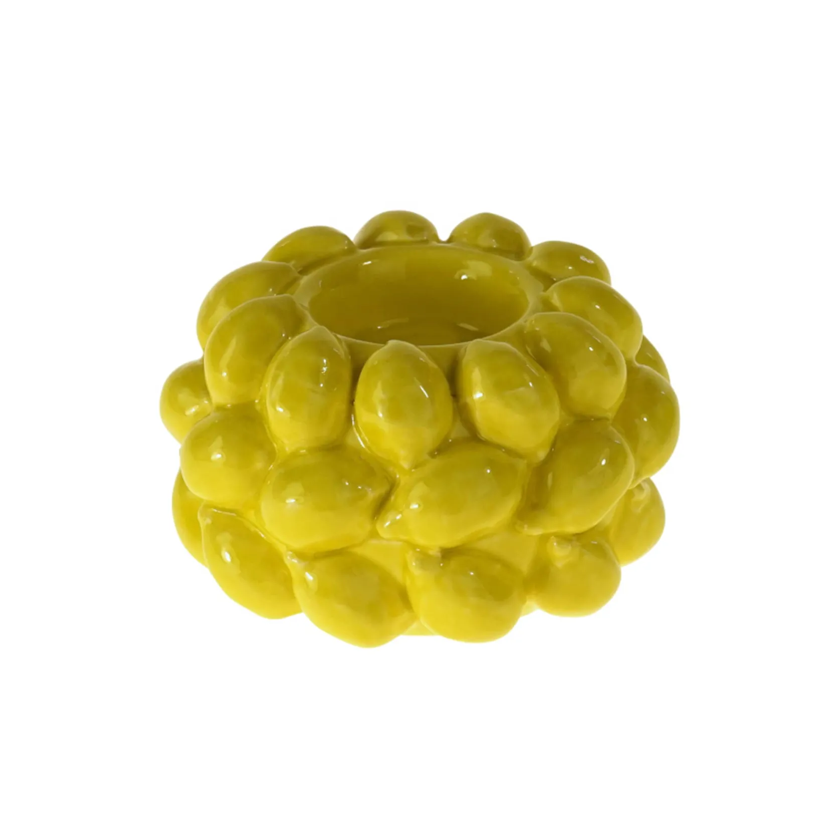 Made from durable ceramic, the holder resembles a pile of yellow lemons. Pair it with yellow candles or try dark blue for a fun contrast. This holder looks fantastic on a mantelpiece or coffee table.
