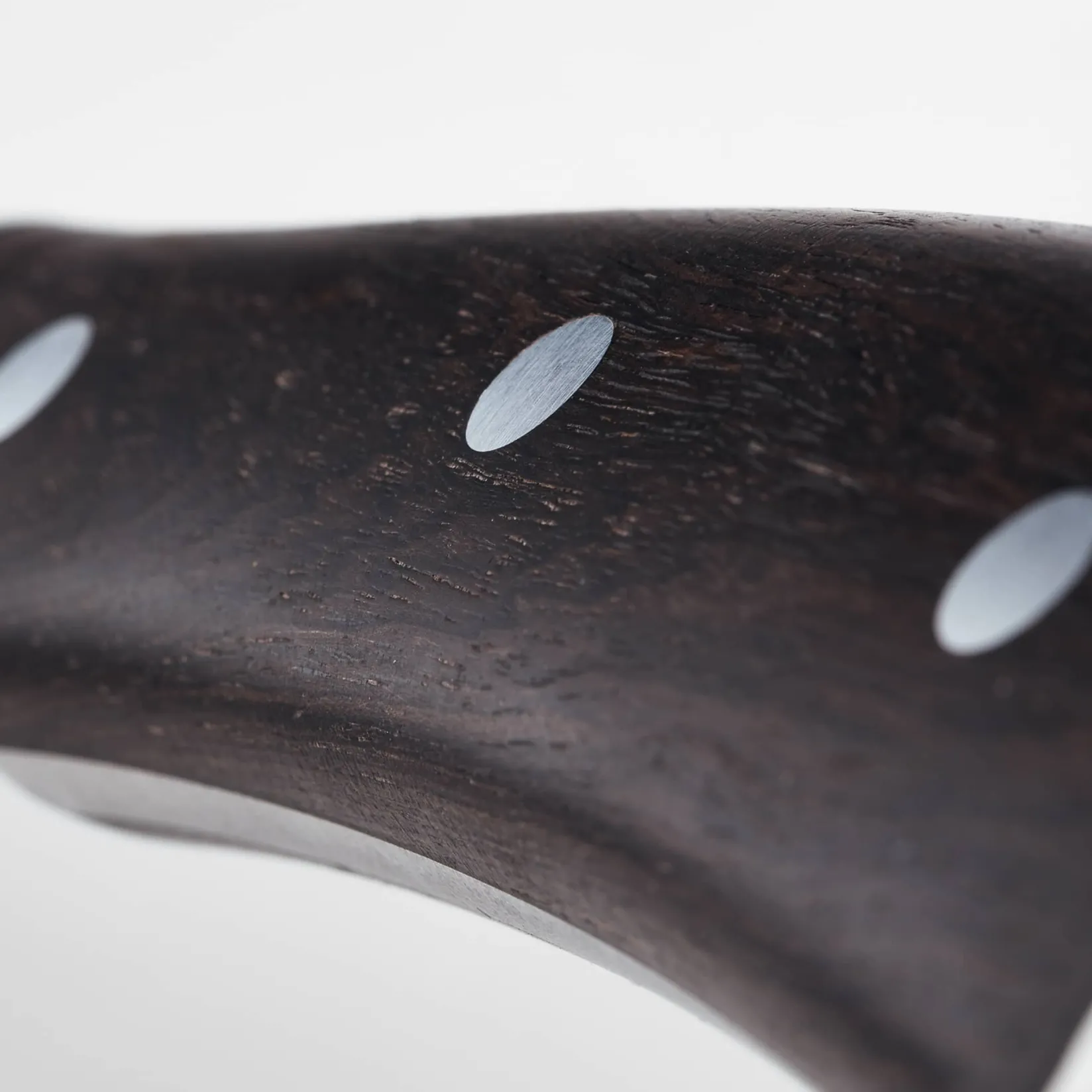 The Ikon series is celebrated for its ergonomic handles, crafted from sustainably grown African Blackwood. This resilient, water-resistant wood, combined with a double bolster for optimal weight distribution, ensures a comfortable and secure grip with precise control.