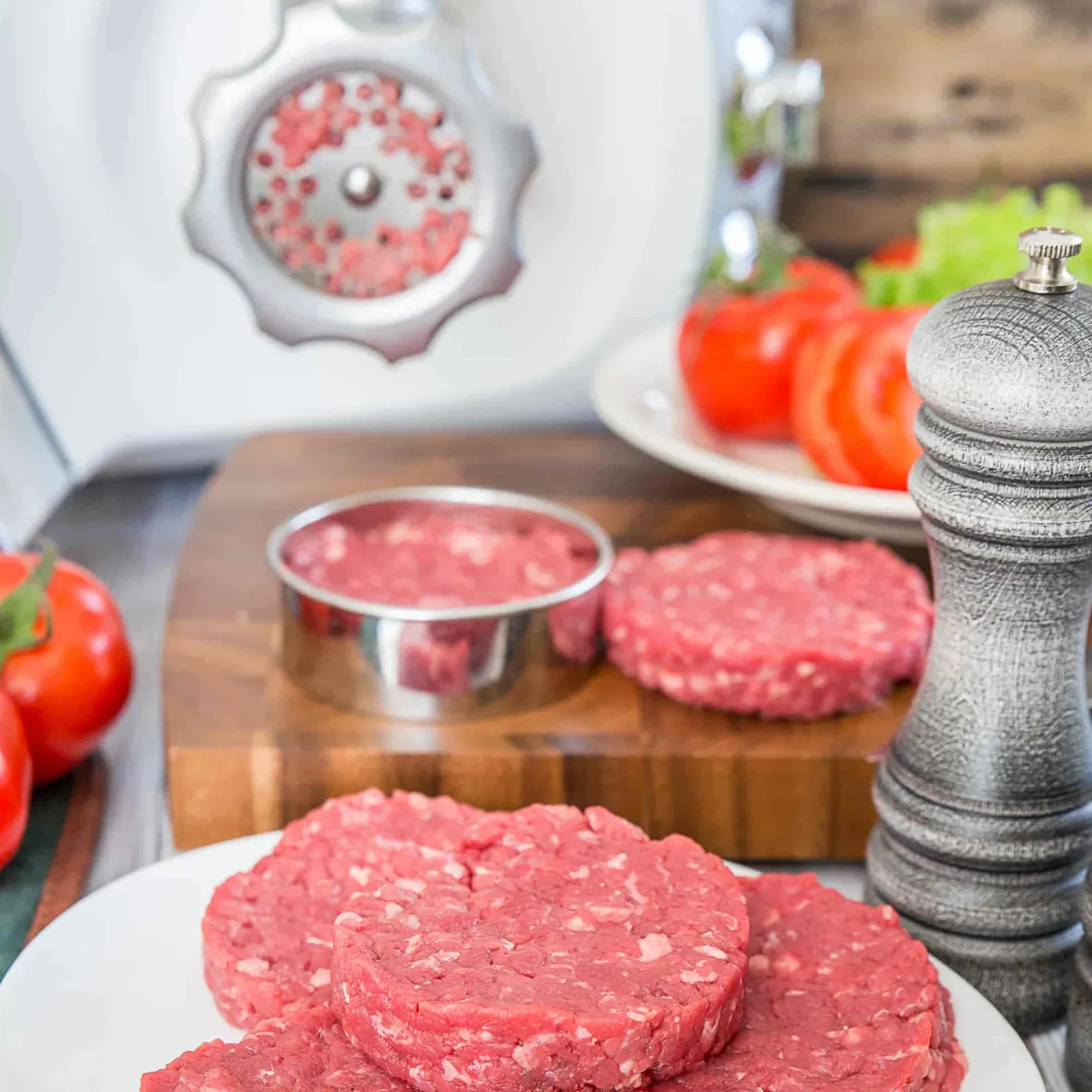 The mincer has coarse and fine discs for making burgers, meatballs and fishcakes. You can even have a go at making your own sausages!