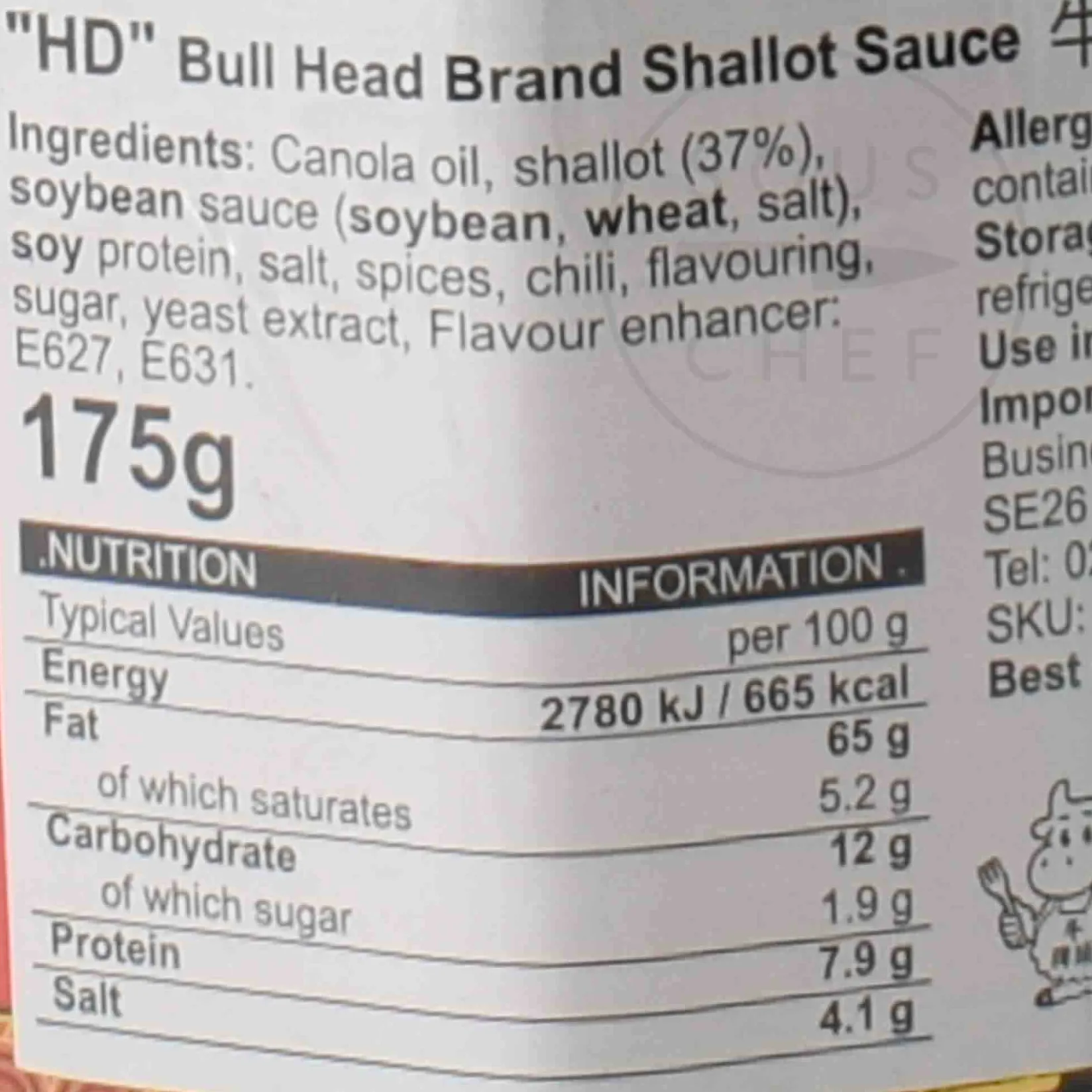 Product formulations and details may change. For the latest ingredients and allergen information always check product packaging prior to consumption. Ingredients: Canola oil, shallot (37%), soybean sauce (soybean, wheat, salt), soy protein, salt, spices, chilli, flavouring, sugar, yeast extract, flavour enhancer: E627, E631.