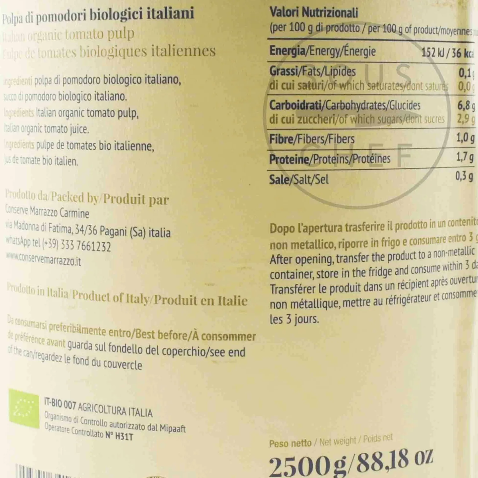 Product formulations and details may change. For the latest ingredients and allergen information always check product packaging prior to consumption. Ingredients: Italian organic tomato pulp (68%), Italian organic tomato juice (32%).