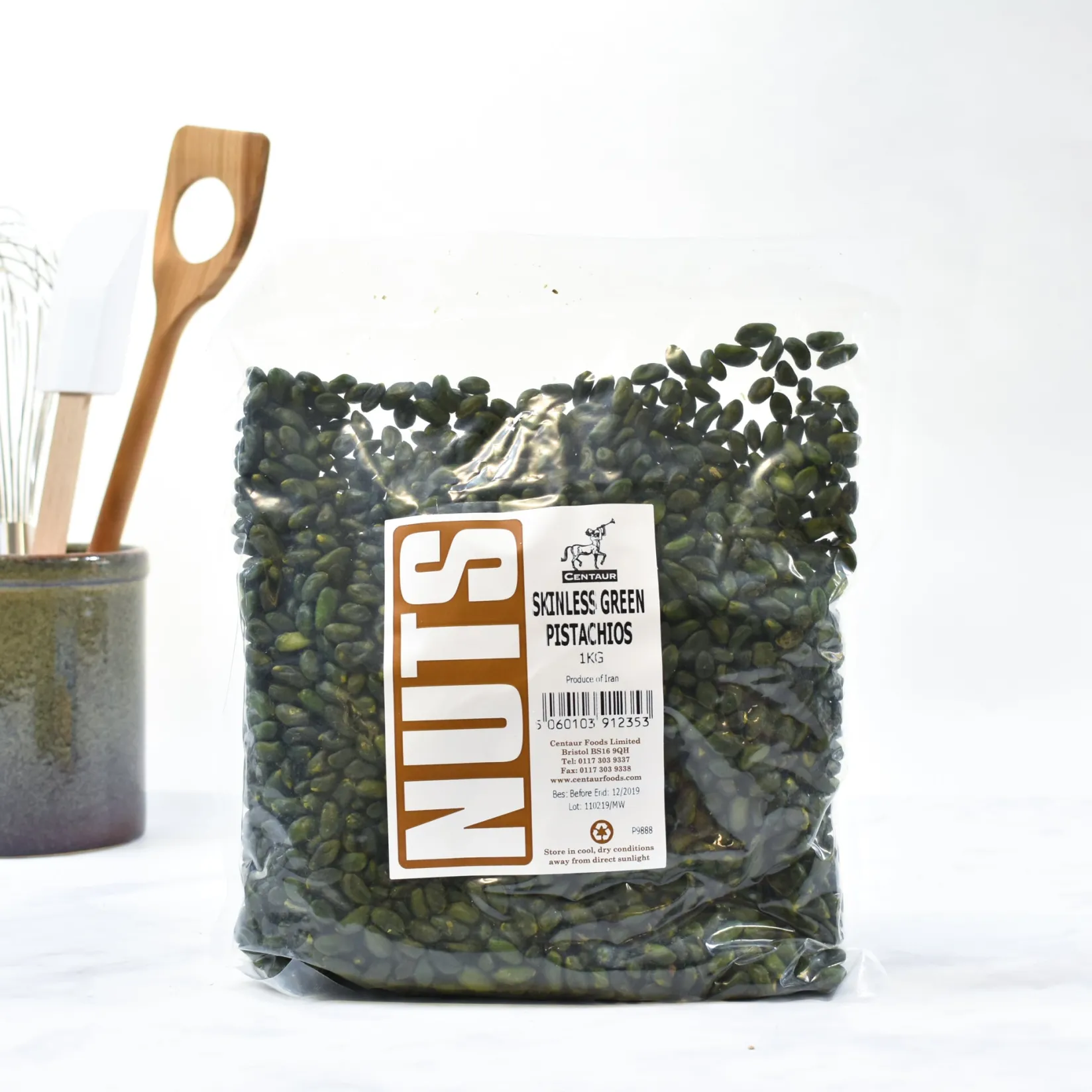 These green skinless pistachios are a beautiful bright green colour with a distinctive sweet, pistachio taste. The skins have been removed taking the hassle out of peeling pistachios.