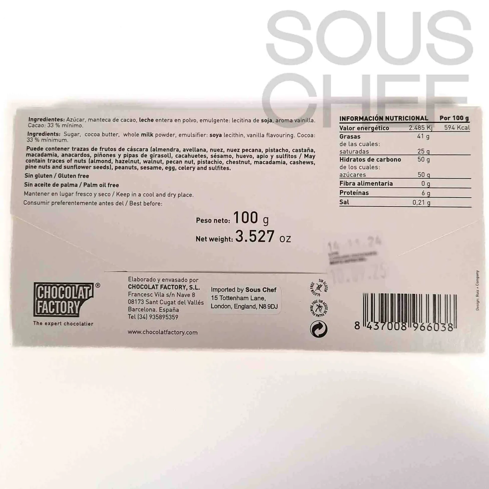 Chocolat Factory products are free from gluten and palm oil.