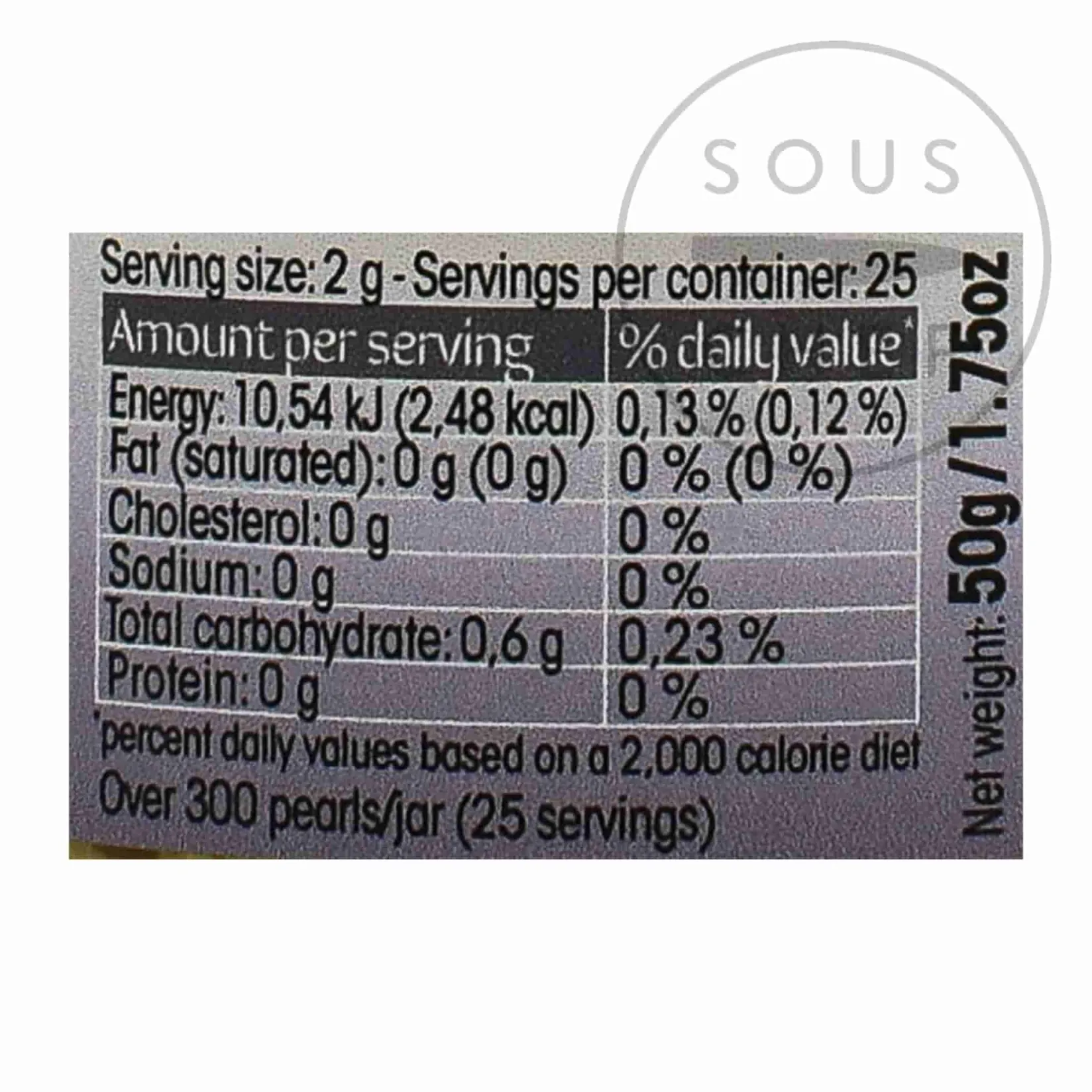 Use these pale, translucent pearls to add a sophisticated finish to beef carpaccio or sashimi salmon, or to complement the savoury flavours of a mushroom risotto. They also made an ideal alternative to caviar for finishing canapes.