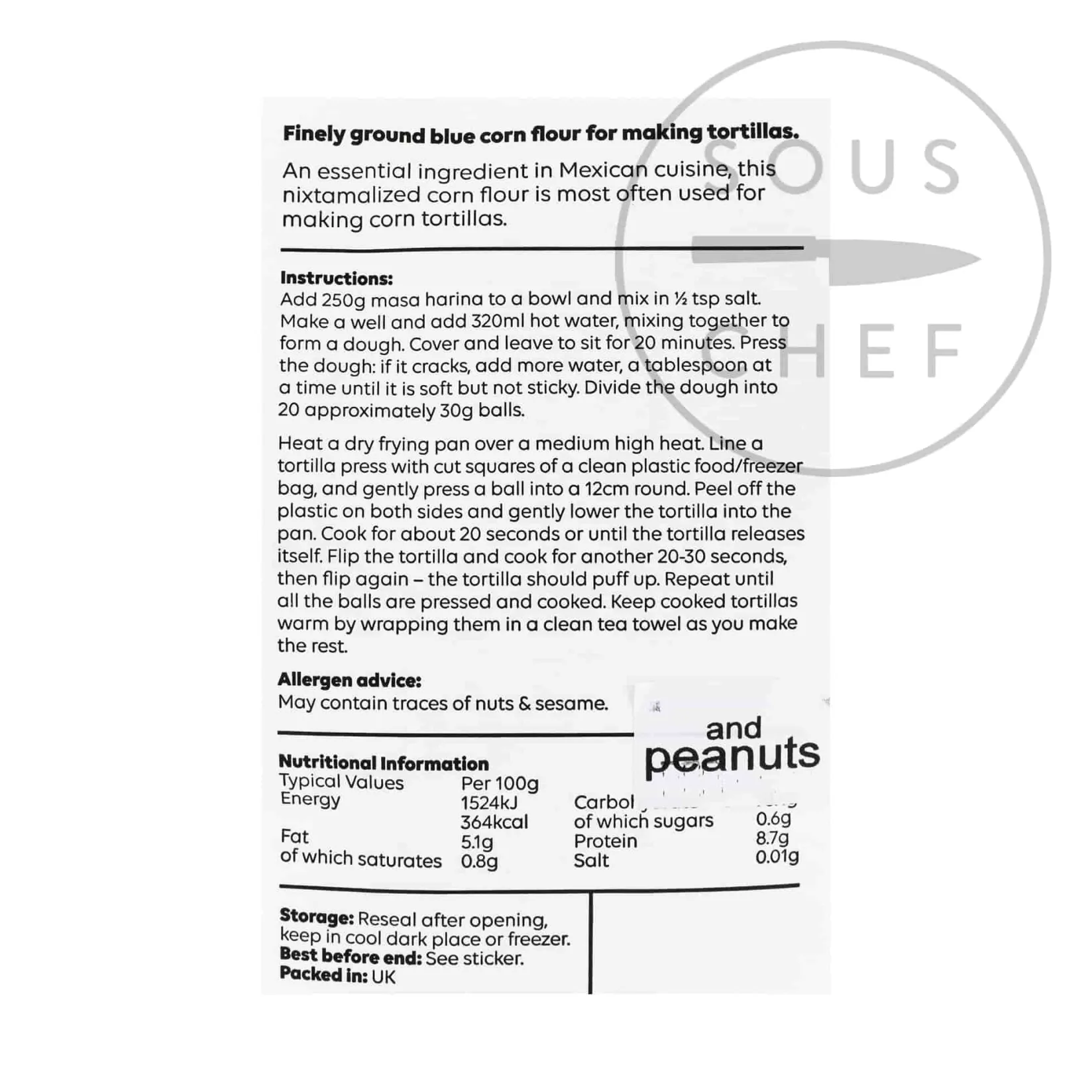 Cool Chile Co blue masa harina is the key for making Mexican blue corn tortillas. This gluten-free flour is made from non-GMO ground blue corn, which has a nuttier flavour than white masa harina flour. It makes for tortillas richer in flavour, and with a dusky blue colour.