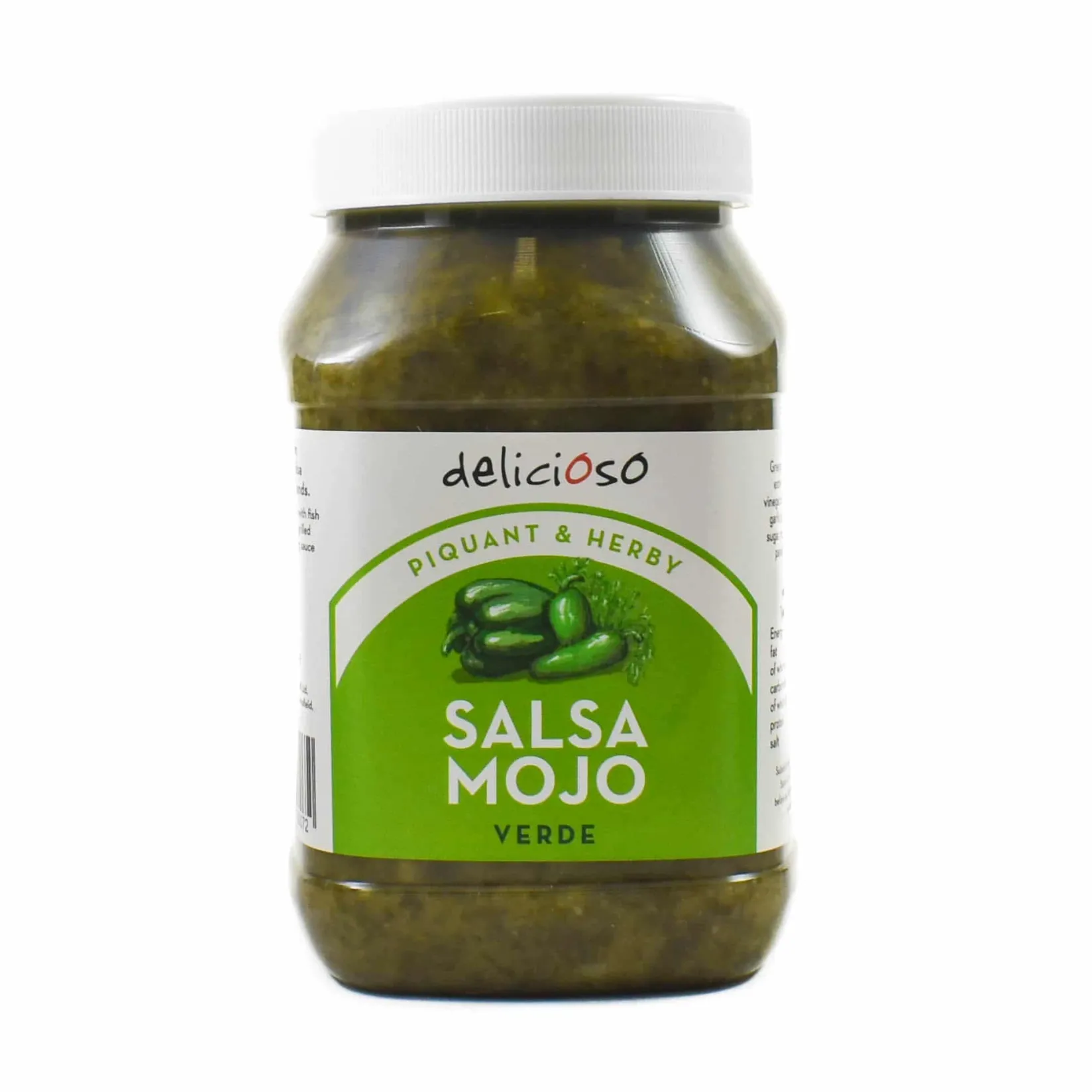 Delicioso salsa mojo verde is made from sweet green pepper and is warm with garlic and fragrant with coriander and parsley. Made using extra virgin olive oil, this salsa verde has a balance of rich savoury and fresh herbal flavours which make it a condiment that pairs beautifully with almost anything!