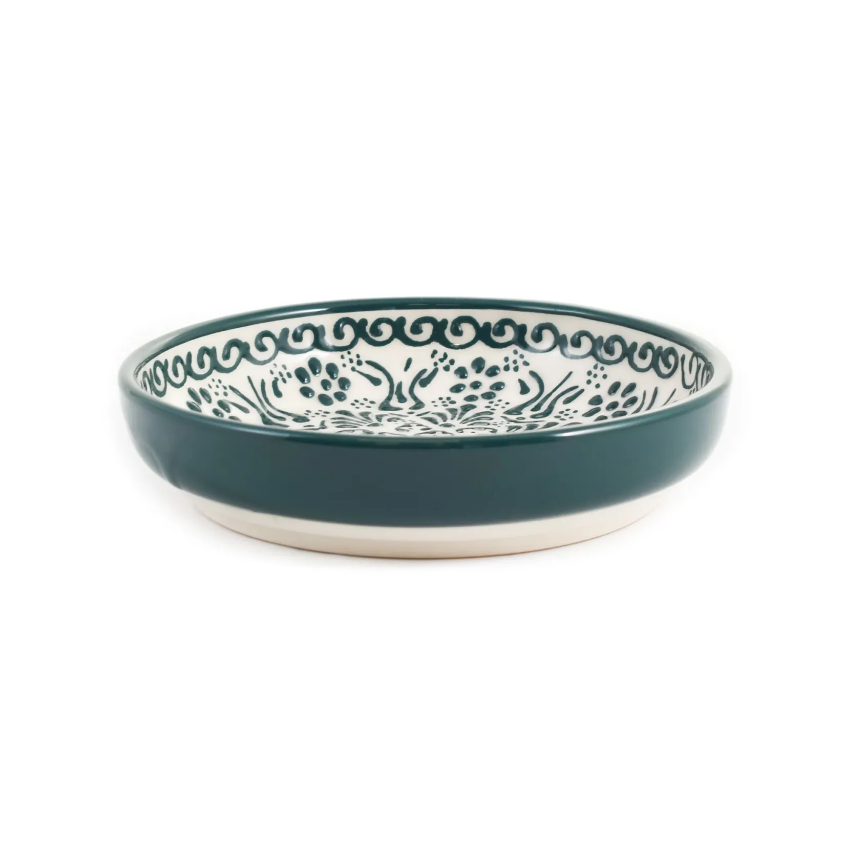 This green patterned shallow bowl is perfect for family-style feasts. Use it to serve side dishes like crispy potatoes or tabbouleh salad.
