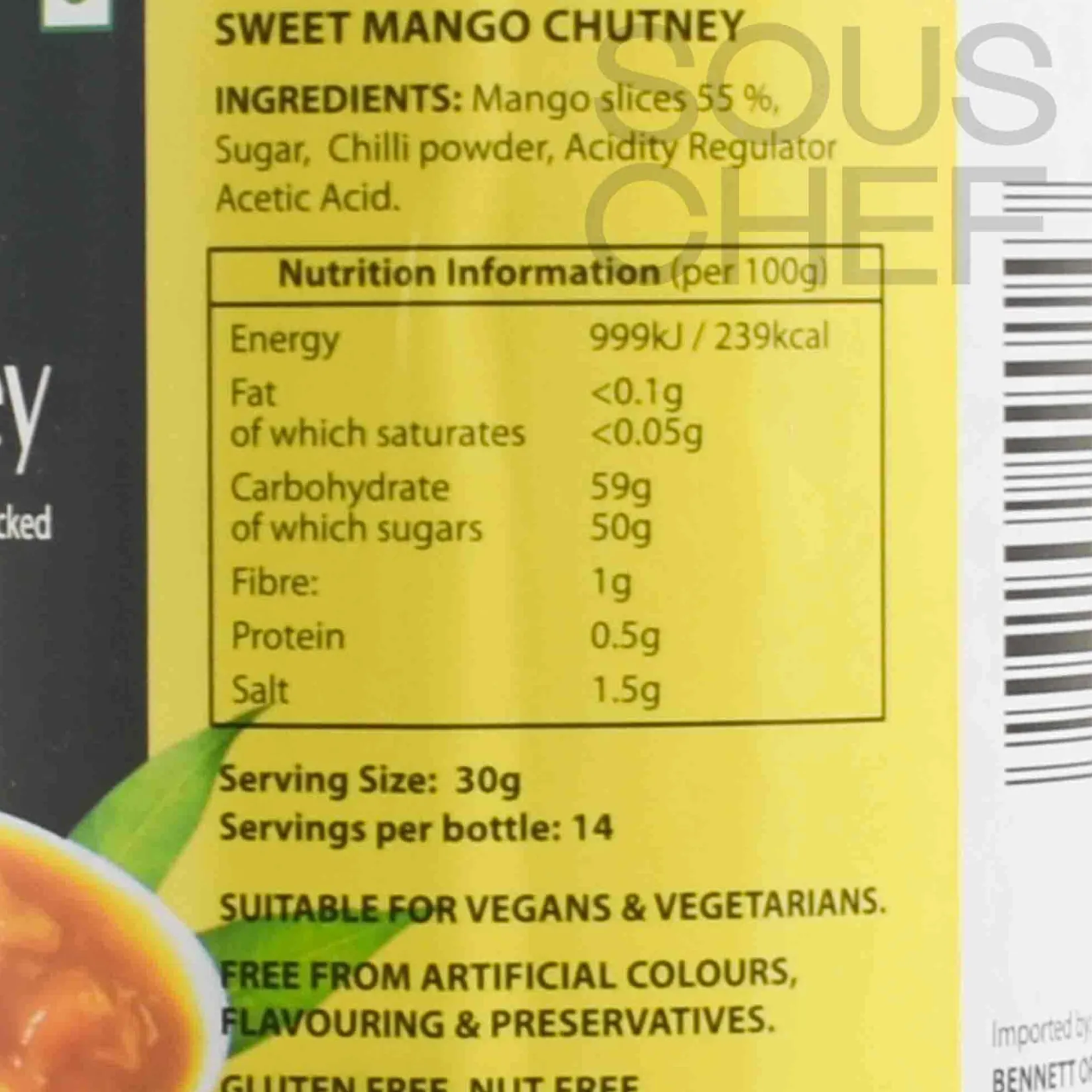 Product formulations and details may change. For the latest ingredients and allergen information always check product packaging prior to consumption. Ingredients: Mango slices 55%, sugar, chilli powder, acidity regulator: acetic acid
