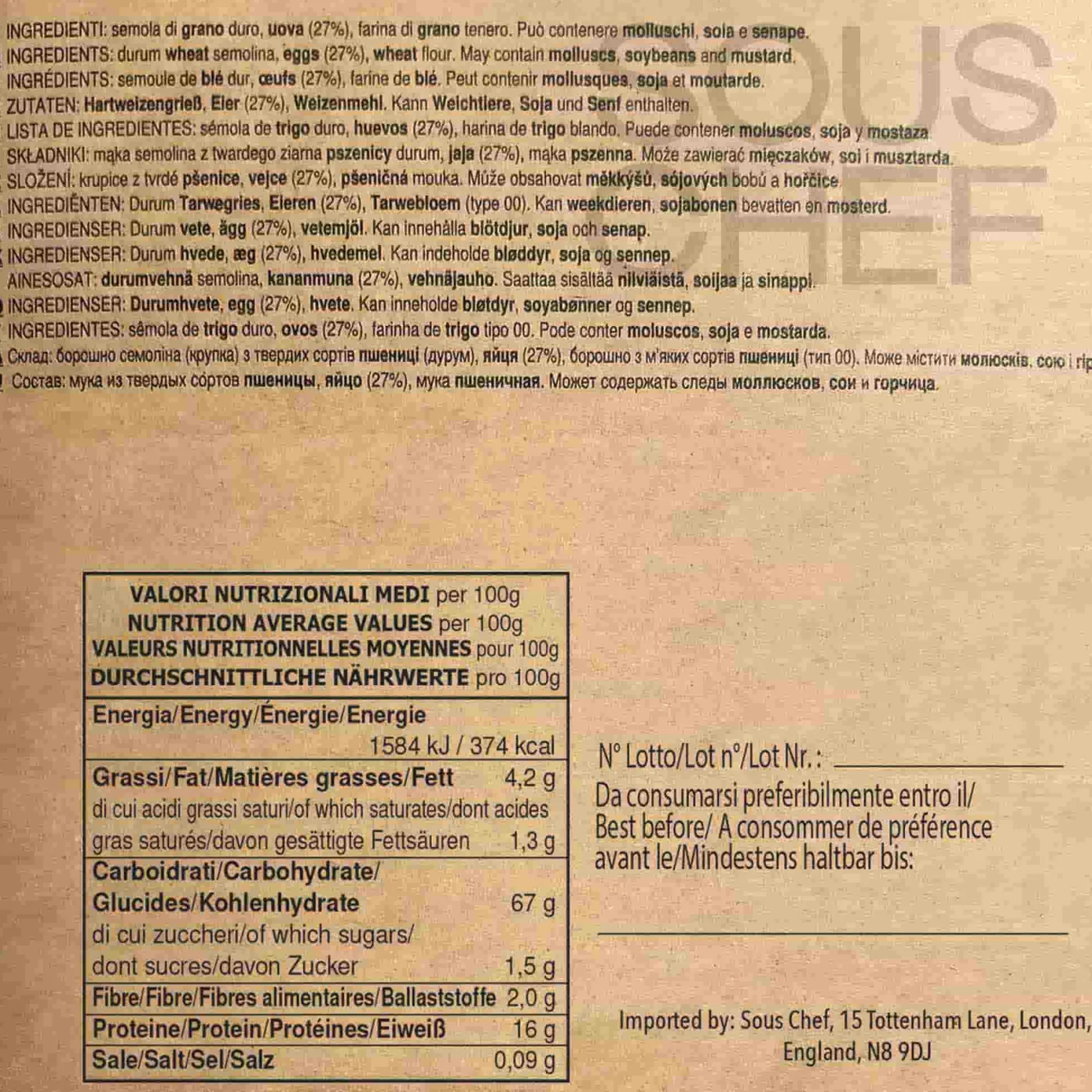 Product formulations and details may change. For the latest ingredients and allergen information always check product packaging prior to consumption. Ingredients: Durum wheat semolina, eggs (27%), wheat flour