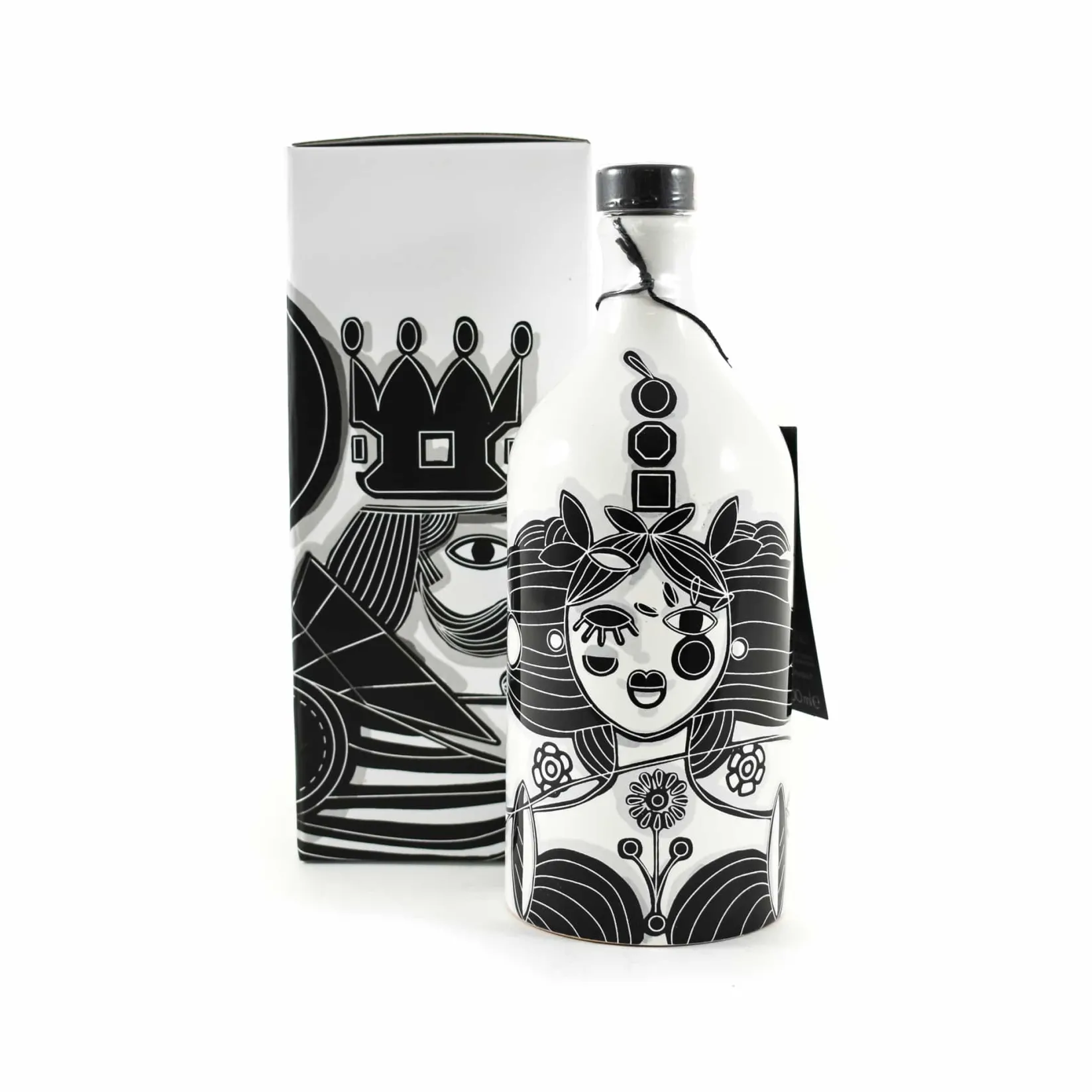The three geometric symbols are paired with a striking ‘Mother Nature’ design. The ‘King’ intense fruity extra virgin olive oil is the perfect partner to create a delicious duo.