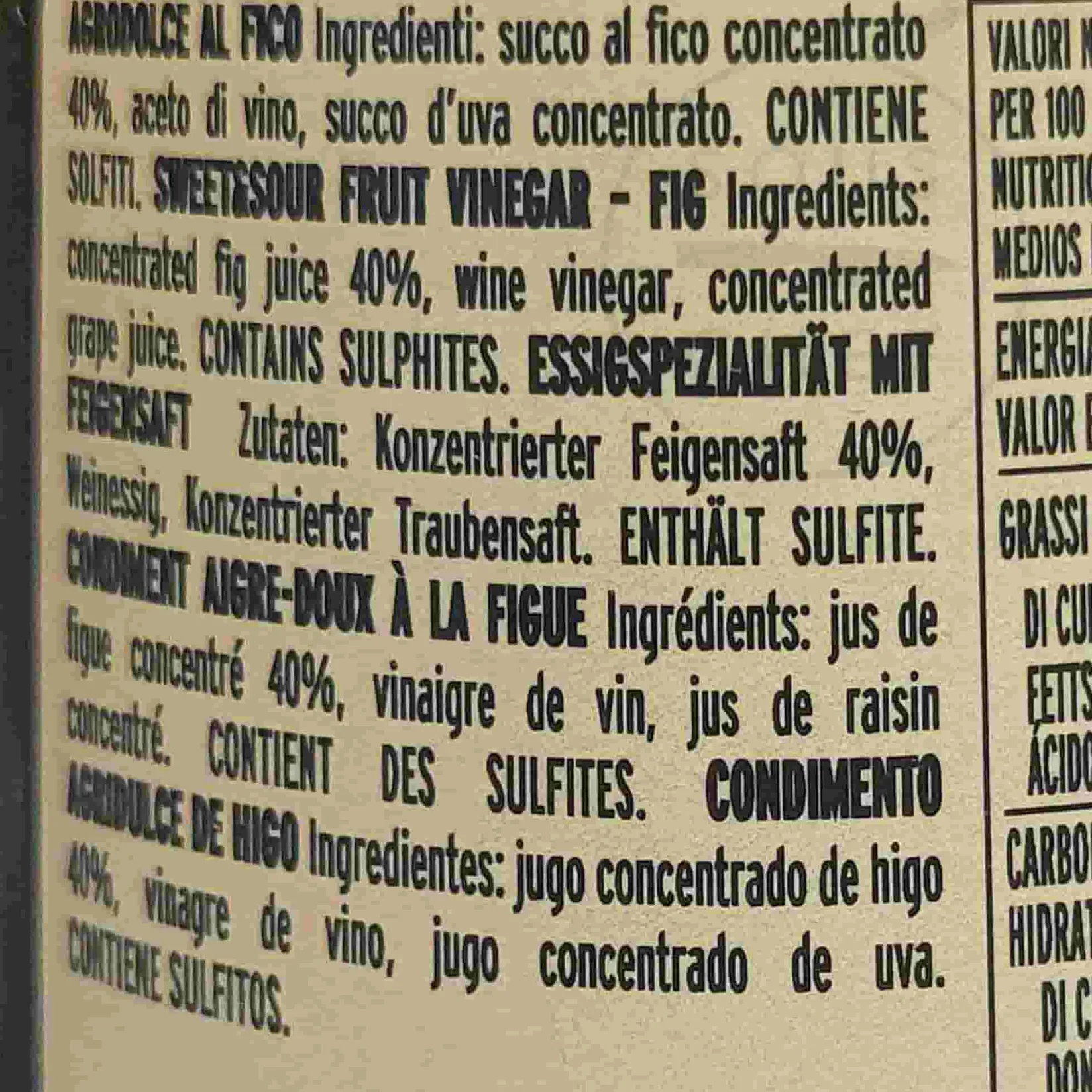 Product formulations and details may change. For the latest ingredients and allergen information always check product packaging prior to consumption. Ingredients: Concentrated fig juice 40%, wine vinegar, concentrated grape juice.